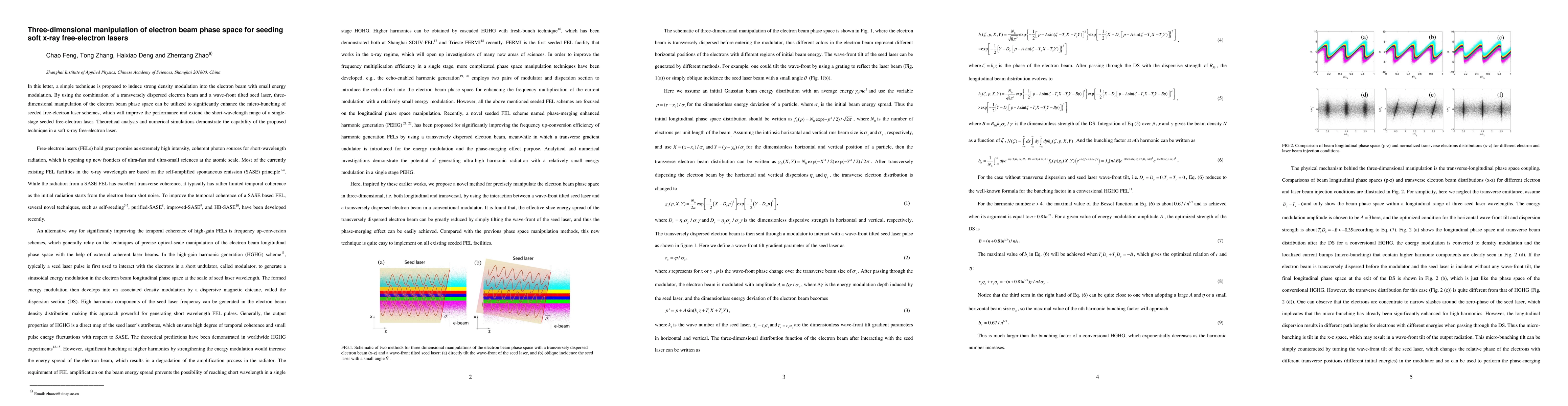 This paper proposes a technique to manipulate the electron beam phase space by combining a transversely dispersed beam and a tilted seed laser, enhancing micro-bunching and improving performance in single-stage seeded free-electron lasers, particularly for soft x-ray applications. Theoretical and simulation results validate the method's effectiveness.