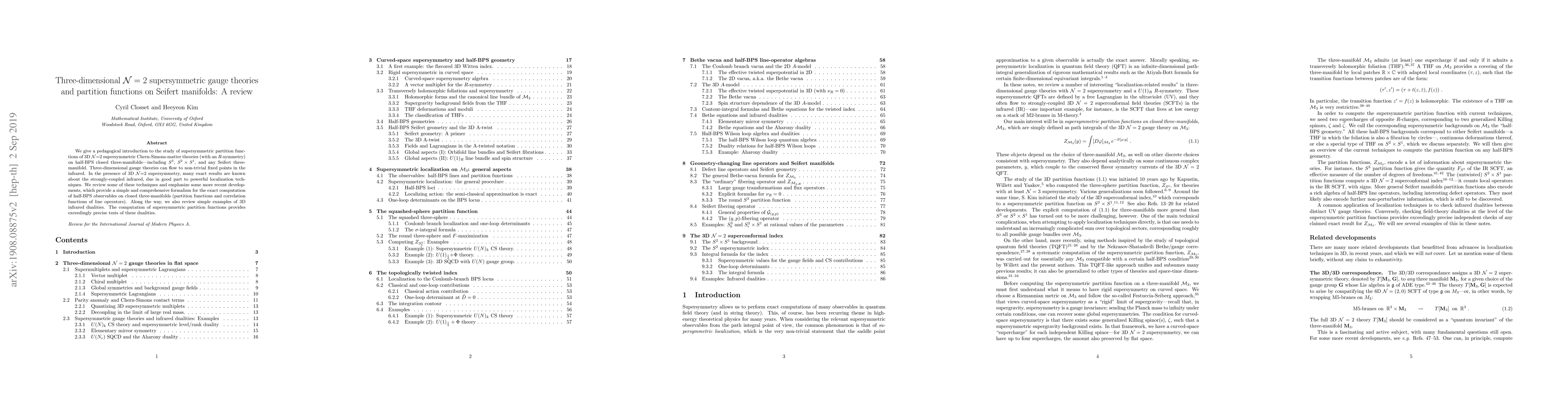 We give a pedagogical introduction to the study of supersymmetric partition functions of 3D $\mathcal{N}{=}2$ supersymmetric Chern-Simons-matter theories (with an $R$-symmetry) on half-BPS closed three-manifolds---including $S^3$, $S^2 \times S^1$, and any Seifert three-manifold. Three-dimensional gauge theories can flow to non-trivial fixed points in the infrared. In the presence of 3D $\mathcal{N}{=}2$ supersymmetry, many exact results are known about the strongly-coupled infrared, due in good part to powerful localization techniques. We review some of these techniques and emphasize some more recent developments, which provide a simple and comprehensive formalism for the exact computation of half-BPS observables on closed three-manifolds (partition functions and correlation functions of line operators). Along the way, we also review simple examples of 3D infrared dualities. The computation of supersymmetric partition functions provides exceedingly precise tests of these dualities.