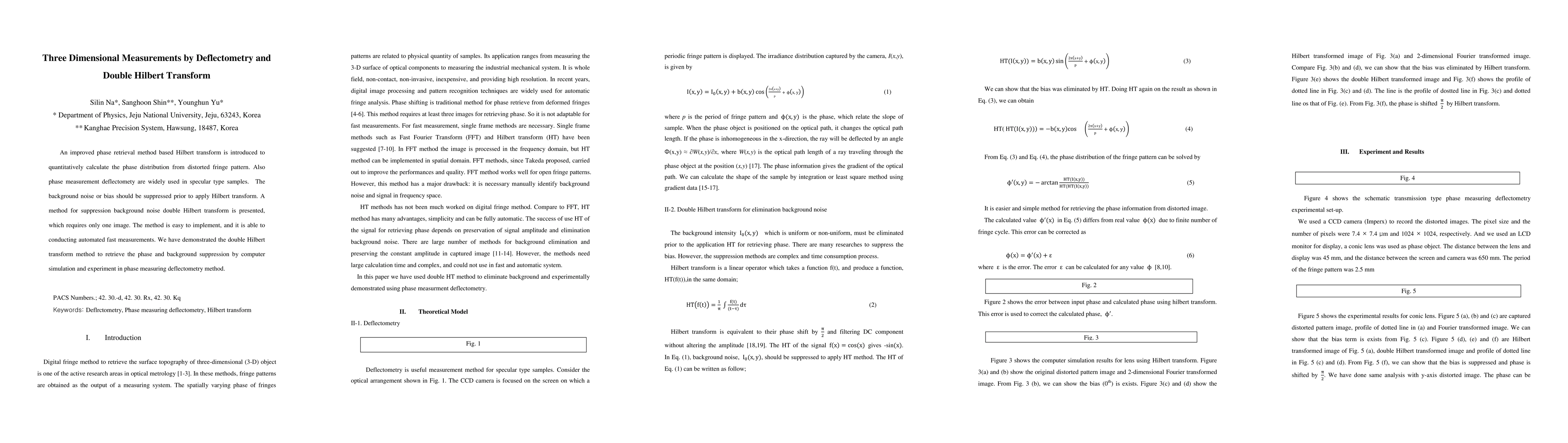 An improved phase retrieval method based Hilbert transform is introduced to quantitatively calculate the phase distribution from distorted fringe pattern. Also phase measurement deflectomety are widely used in specular type samples. The background noise or bias should be suppressed prior to apply Hilbert transform. A method for suppression background noise double Hilbert transform is presented, which requires only one image. The method is easy to implement, and it is able to conducting automated fast measurements. We have demonstrated the double Hilbert transform method to retrieve the phase and background suppression by computer simulation and experiment in phase measuring deflectometry method.