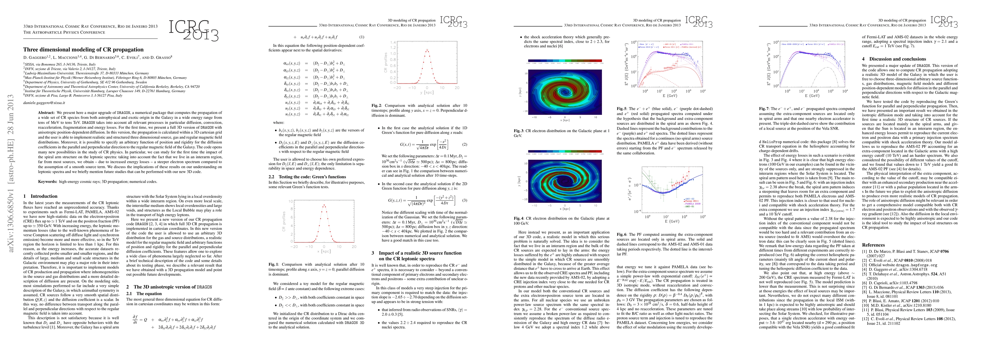 We present here a major upgrade of DRAGON, a numerical package that computes the propagation of a wide set of CR species from both astrophysical and exotic origin in the Galaxy in a wide energy range from tens of MeV to tens of TeV. DRAGON takes into account all relevant processes in particular diffusion, convection, reacceleration, fragmentation and energy losses. For the first time, we present a full 3D version of DRAGON with anisotropic position-dependent diffusion. In this version, the propagation is calculated within a 3D cartesian grid and the user is able to implement realistic and structured three dimensional source, gas and regular magnetic field distributions. Moreover, it is possible to specify an arbitrary function of position and rigidity for the diffusion coefficients in the parallel and perpendicular direction to the regular magnetic field of the Galaxy. The code opens many new possibilities in the study of CR physics. In particular, we can study for the first time the impact of the spiral arm structure on the leptonic spectra: taking into account the fact that we live in an interarm region, far from most sources, we obtain - due to increased energy losses - a steeper electron spectrum compared to the assumption of a smooth source term. We discuss the implications of these results on our understanding on leptonic spectra and we briefly mention future studies that can be performed with our new 3D code.