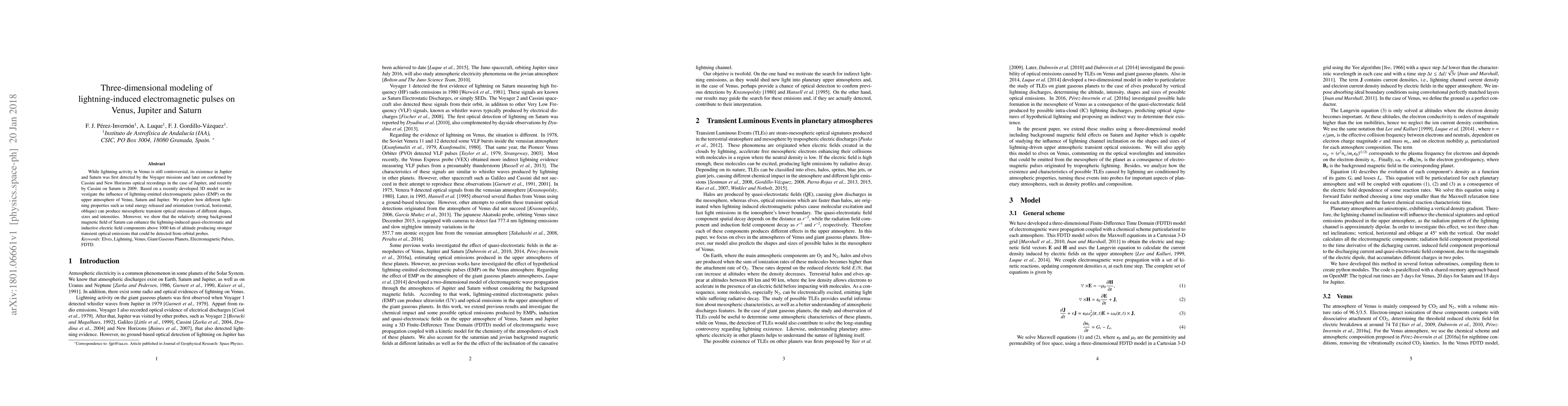 This paper investigates the effects of lightning-induced electromagnetic pulses (EMP) on the upper atmospheres of Venus, Saturn, and Jupiter using a 3D model. It explores how varying lightning properties influence mesospheric transient optical emissions, and highlights that Saturn's strong magnetic field can amplify these effects, potentially enhancing detectable emissions from orbital probes.