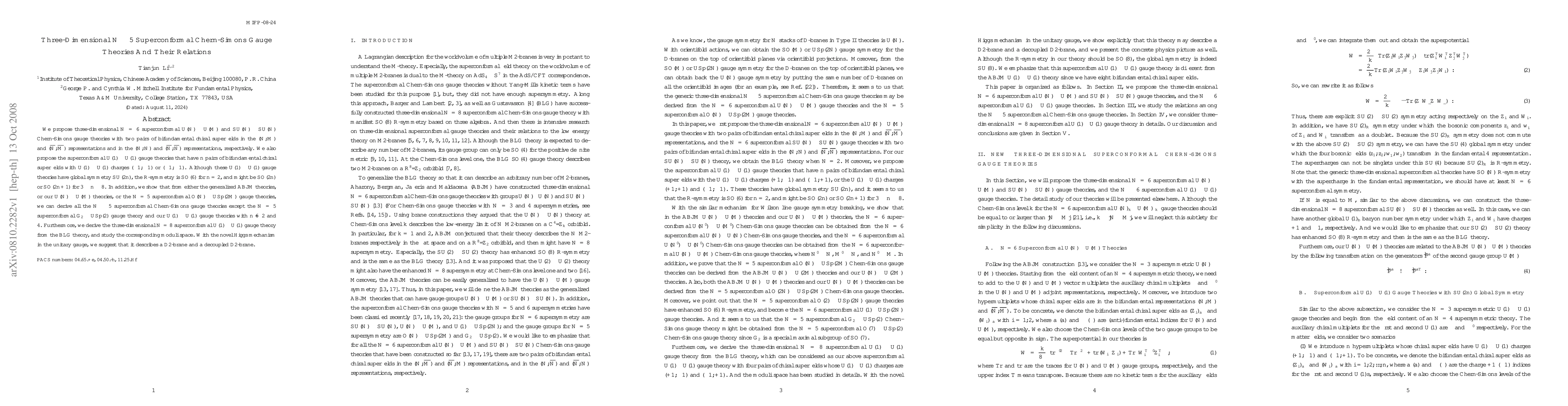 This paper proposes new three-dimensional N=6 superconformal Chern-Simons gauge theories, including U(N) X U(M) and SU(N) X SU(N) variants, and U(1) X U(1) theories with bifundamental chiral superfields. It demonstrates the derivation of most N ≥ 5 superconformal Chern-Simons gauge theories from existing frameworks and introduces a novel Higgs mechanism describing D2-branes.