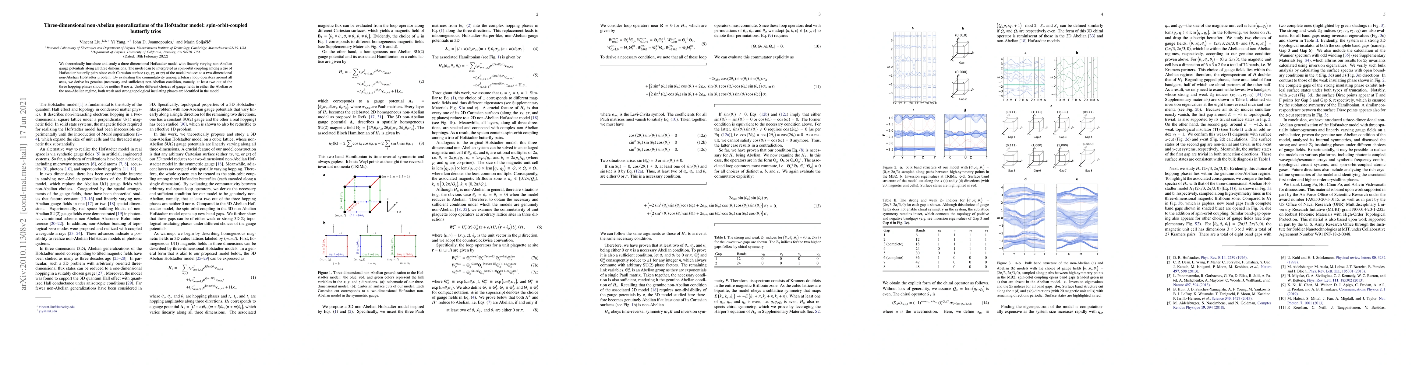 This paper presents a 3D extension of the Hofstadter model with non-Abelian gauge potentials, interpretable as spin-orbit coupling among Hofstadter butterfly pairs. It derives a necessary and sufficient non-Abelian condition and identifies both weak and strong topological insulating phases under varying gauge field choices.