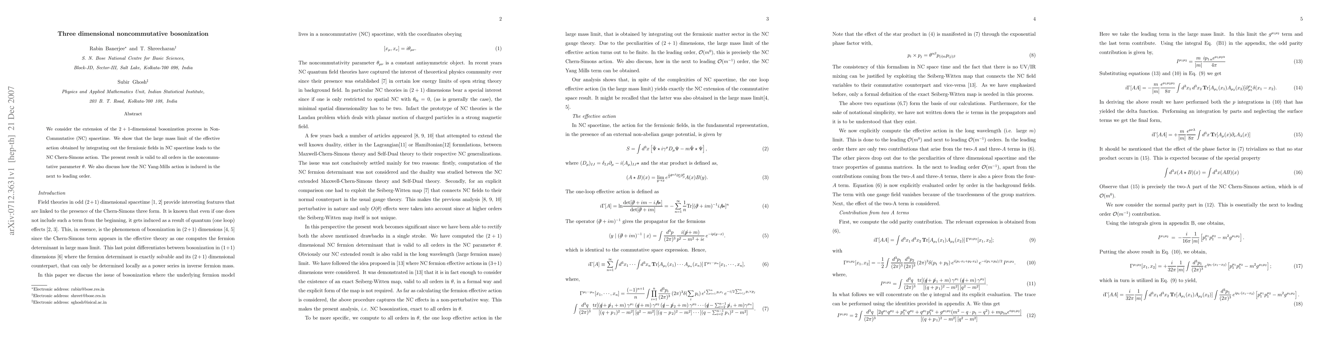 This paper extends the 2+1-dimensional bosonization process to noncommutative spacetime, demonstrating that integrating out fermionic fields leads to the NC Chern-Simons action in the large mass limit, valid to all orders in the noncommutative parameter $\theta$. It also discusses the induction of the NC Yang-Mills action in the next to leading order.