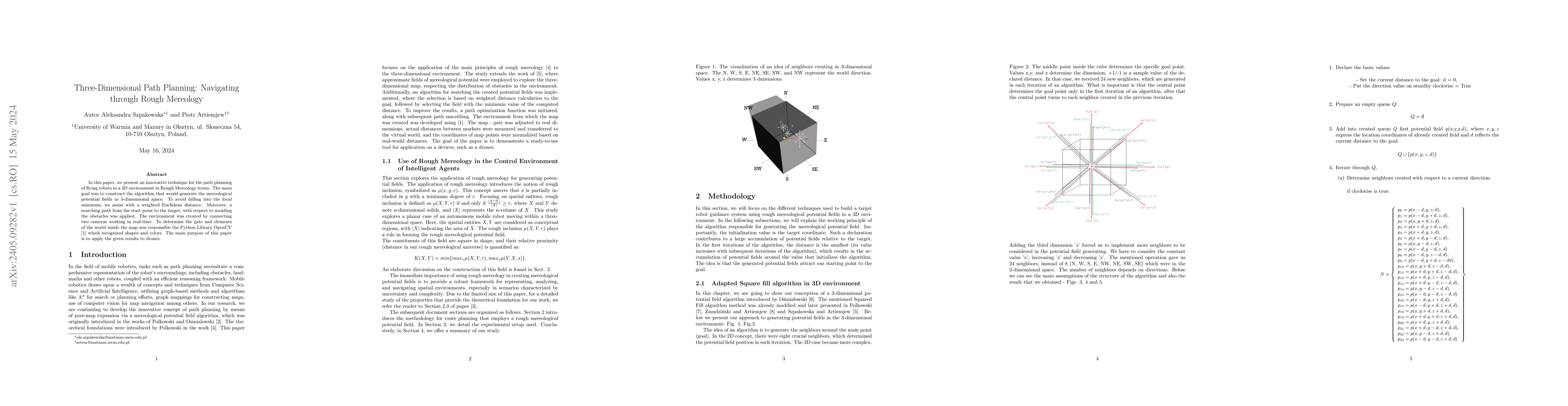 This paper introduces a novel algorithm for 3D path planning for flying robots using Rough Mereology, employing weighted Euclidean distance to avoid local minima and real-time camera systems with OpenCV for obstacle avoidance, aiming to enhance drone navigation.
