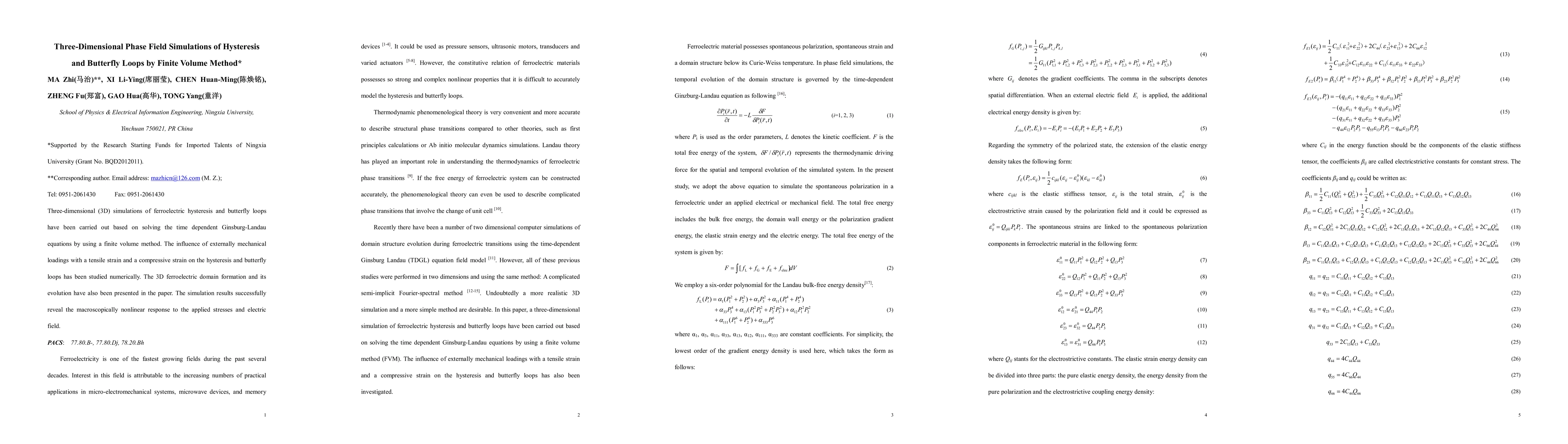 This paper presents 3D simulations of ferroelectric hysteresis and butterfly loops using a finite volume method to solve the Ginsburg-Landau equations. It investigates the effects of mechanical loadings on these phenomena and demonstrates the evolution of ferroelectric domain formation under applied stresses and electric fields.