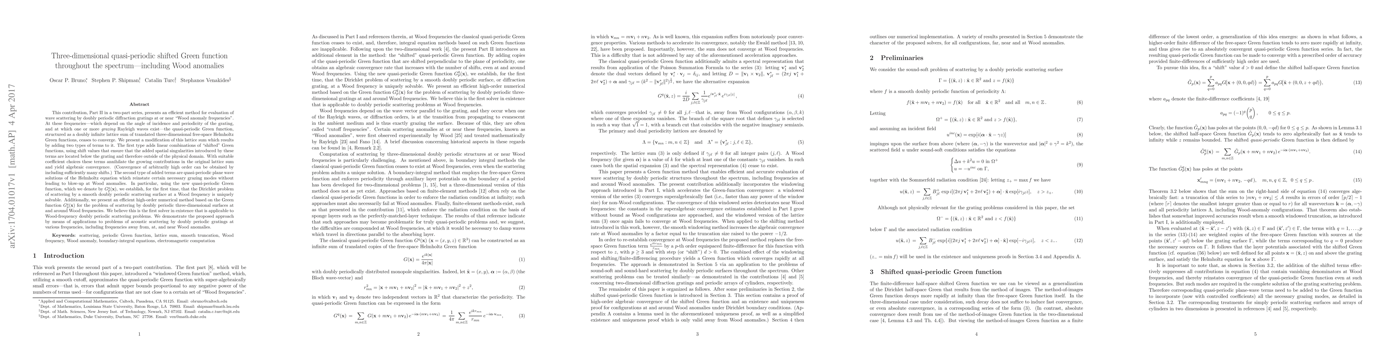 This paper introduces an efficient method for evaluating wave scattering by doubly periodic diffraction gratings, particularly at Wood anomaly frequencies, by modifying the quasi-periodic Green function to ensure algebraic convergence and unique solvability of the scattering problem. The method includes shifted Green functions and quasi-periodic plane wave solutions, enabling high-order numerical solutions for scattering problems at and around Wood anomalies.