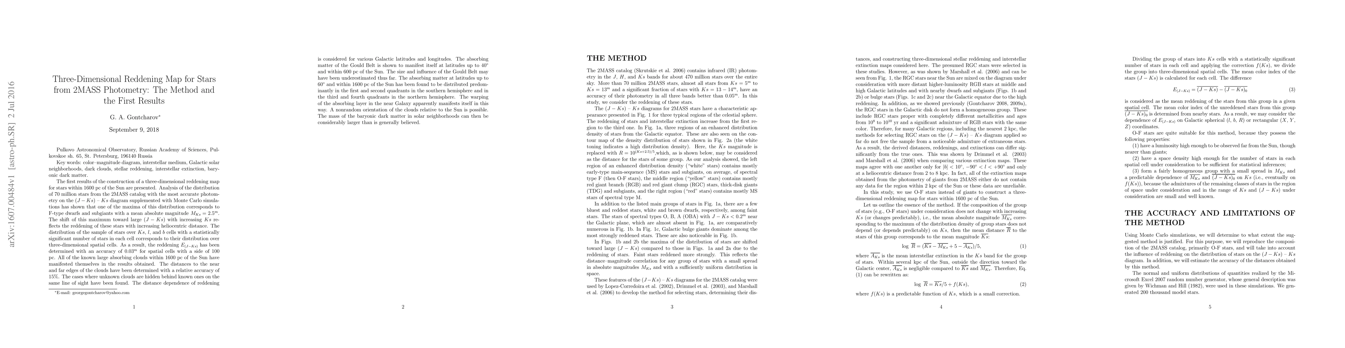 This paper presents a 3D reddening map for stars within 1600 pc from the Sun, derived from 2MASS photometry. The study identifies F-type dwarfs and subgiants as a primary reddening source, revealing the distribution and distances of large absorbing clouds with 15% relative accuracy.