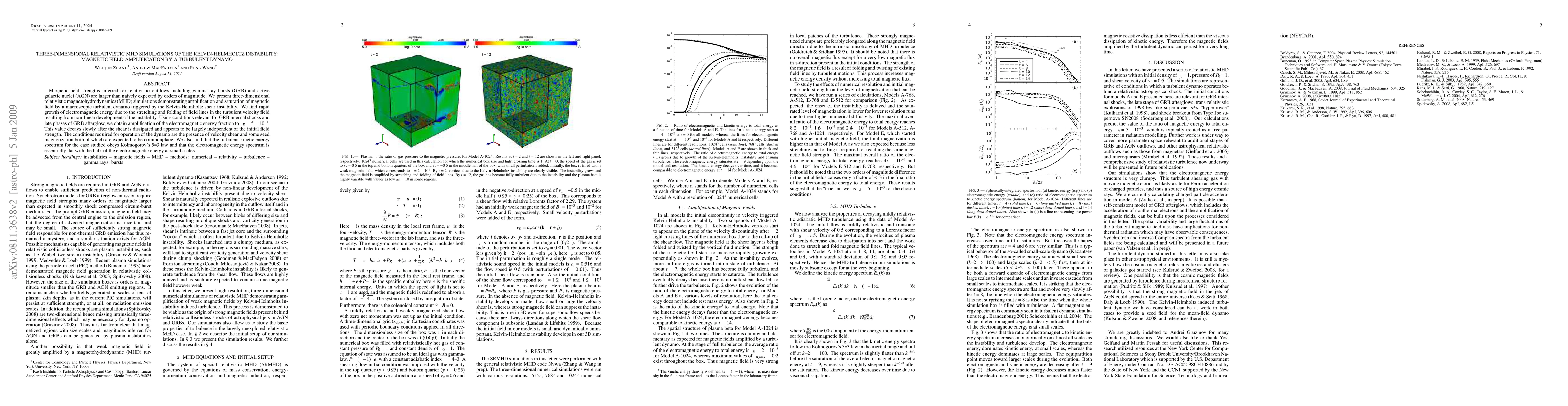 Magnetic field strengths inferred for relativistic outflows including gamma-ray bursts (GRB) and active galactic nuclei (AGN) are larger than naively expected by orders of magnitude. We present three-dimensional relativistic magnetohydrodynamics (MHD) simulations demonstrating amplification and saturation of magnetic field by a macroscopic turbulent dynamo triggered by the Kelvin-Helmholtz shear instability. We find rapid growth of electromagnetic energy due to the stretching and folding of field lines in the turbulent velocity field resulting from non-linear development of the instability. Using conditions relevant for GRB internal shocks and late phases of GRB afterglow, we obtain amplification of the electromagnetic energy fraction to $\epsilon_B \sim 5 \times 10^{-3}$. This value decays slowly after the shear is dissipated and appears to be largely independent of the initial field strength. The conditions required for operation of the dynamo are the presence of velocity shear and some seed magnetization both of which are expected to be commonplace. We also find that the turbulent kinetic energy spectrum for the case studied obeys Kolmogorov's 5/3 law and that the electromagnetic energy spectrum is essentially flat with the bulk of the electromagnetic energy at small scales.