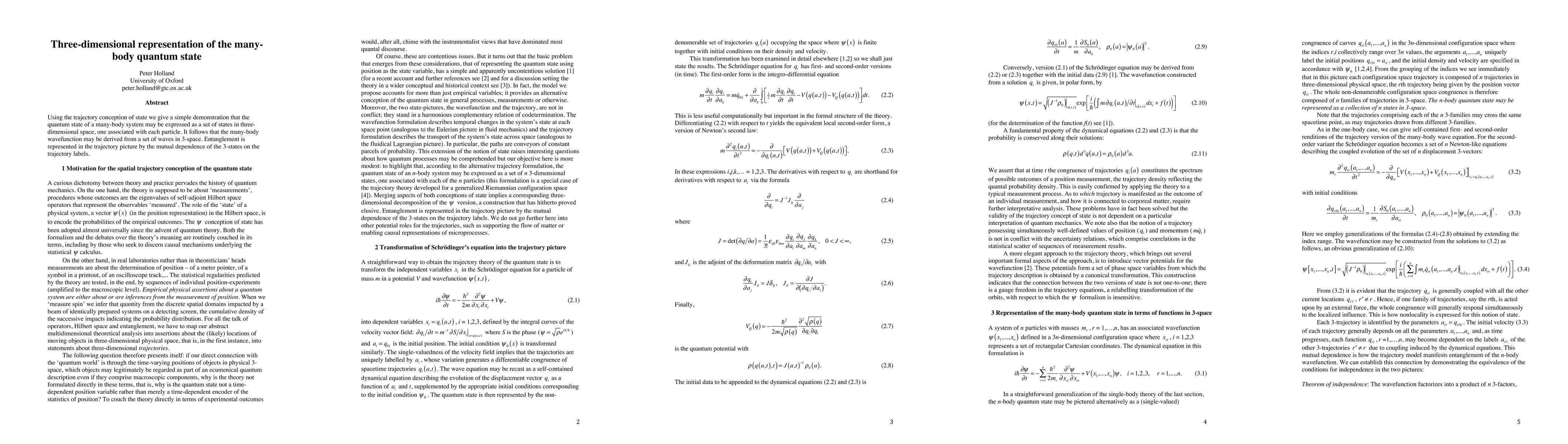 Using the trajectory conception of state we give a simple demonstration that the quantum state of a many-body system may be expressed as a set of states in three-dimensional space, one associated with each particle. It follows that the many-body wavefunction may be derived from a set of waves in 3-space. Entanglement is represented in the trajectory picture by the mutual dependence of the 3-states on the trajectory labels.