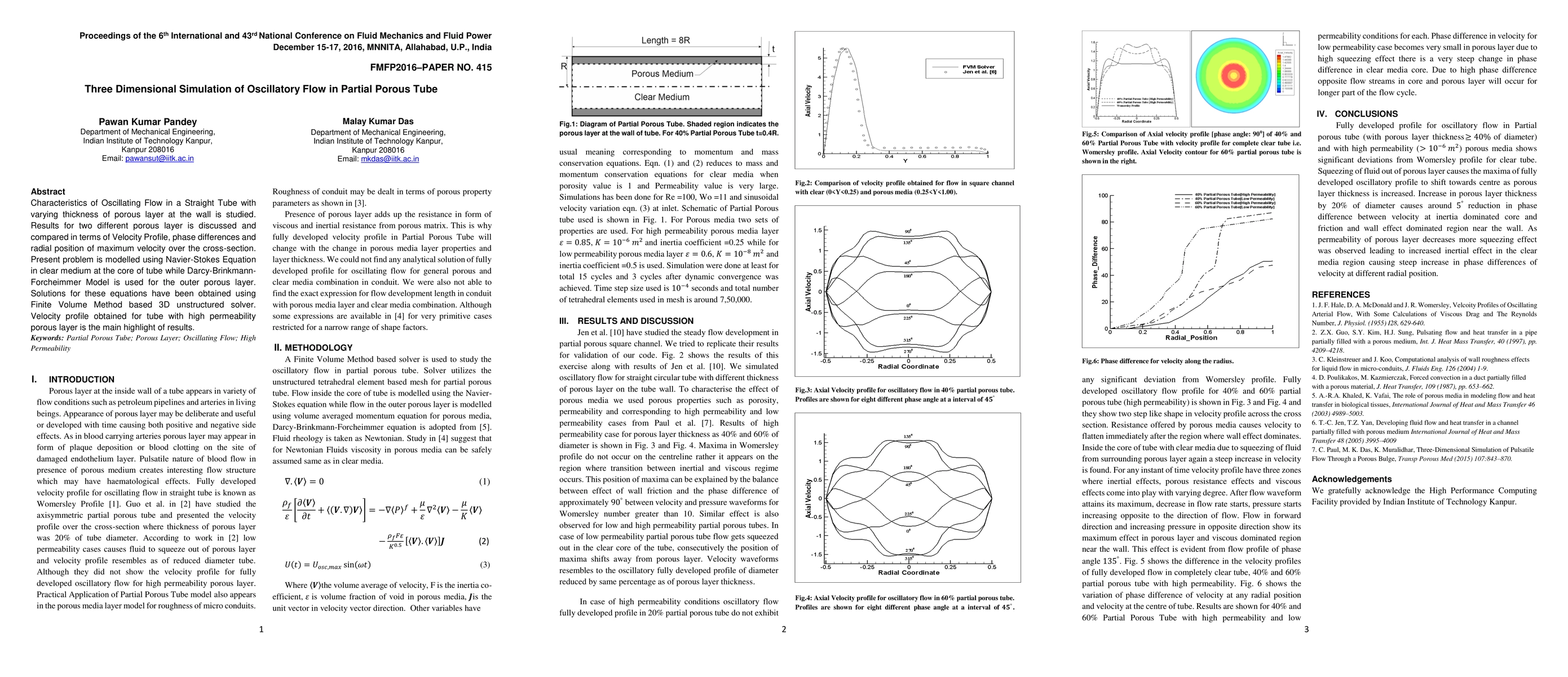 Researchers studied oscillatory flow in a partially porous tube, comparing results for two different porous layer thicknesses to find key differences in velocity profiles and maximum velocity positions.