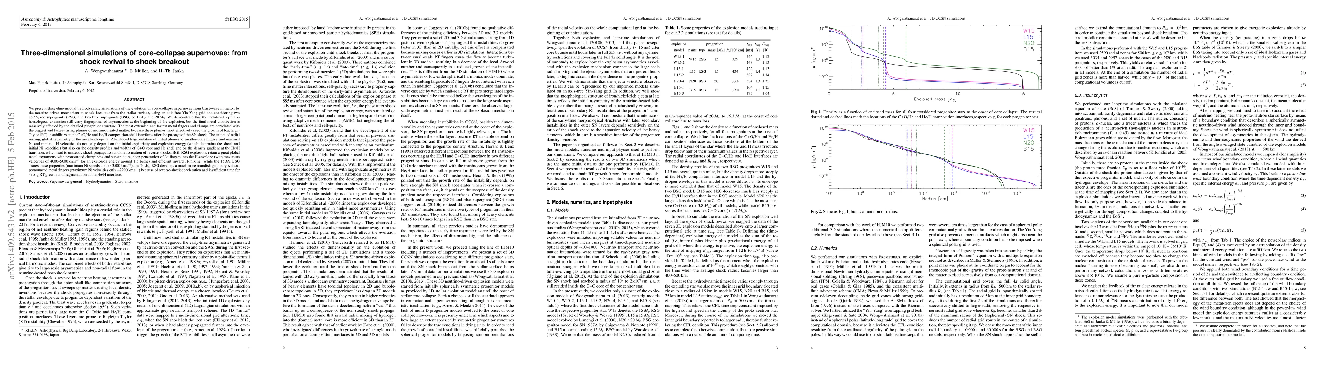 This paper presents 3D simulations of core-collapse supernovae from initiation to shock breakout, showing that initial asymmetries in progenitor stars significantly influence the metal distribution and shock dynamics. The study highlights the impact of progenitor structure on radial mixing, asymmetry, and the formation of metal fingers and clumps, with varying outcomes based on the star's mass and composition.