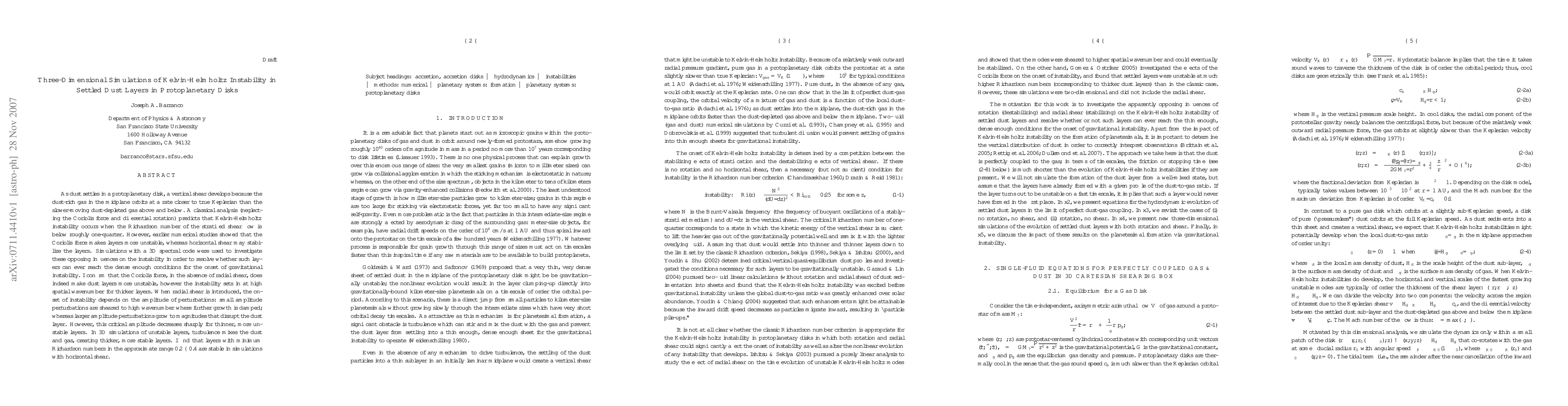 This paper investigates the Kelvin-Helmholtz instability in dust layers within protoplanetary disks using 3D simulations. It finds that the Coriolis force increases instability, but radial shear can either stabilize or destabilize layers depending on perturbation amplitude, leading to turbulence that mixes dust and gas, ultimately stabilizing the layers when their Richardson numbers fall within 0.2-0.4.