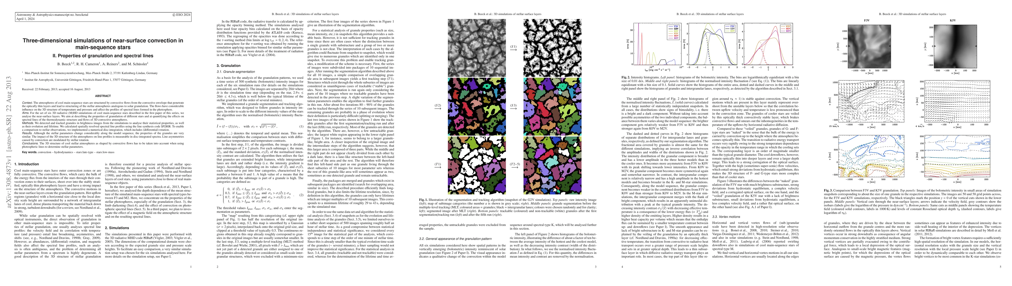 This paper investigates the properties of granulation in the near-surface layers of cool main-sequence stars through 3D simulations, revealing similar granule characteristics across different stars. It also quantifies the effects of 3D convective atmospheres on spectral line profiles, showing that these structures significantly influence line asymmetries modulated by stellar rotation.