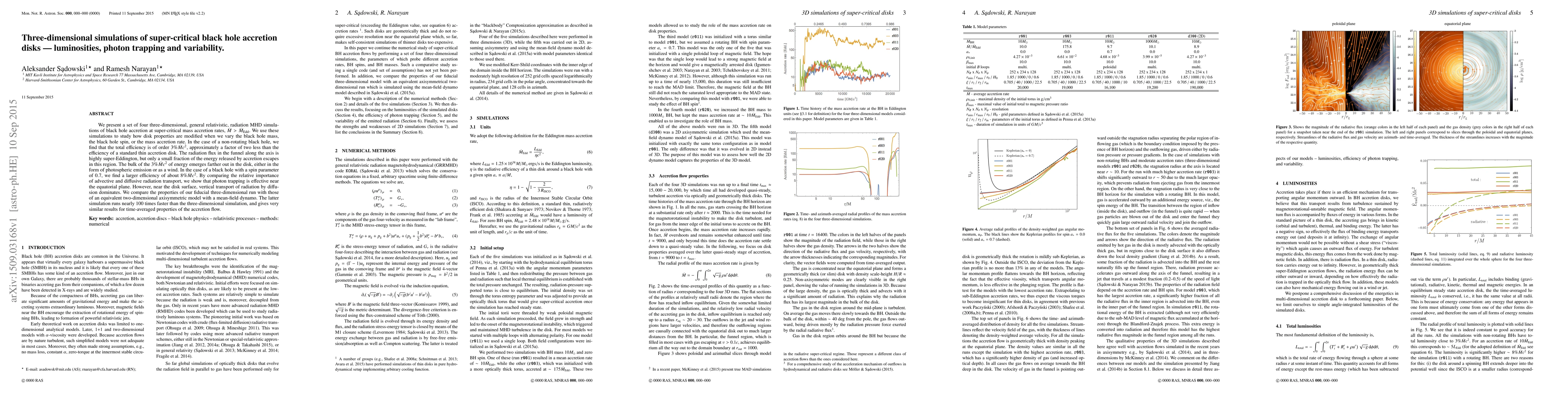 Researchers simulate super-critical black hole accretion disks to find that energy escape rates are much lower than expected, with only a small fraction escaping near the event horizon, and varying efficiency depending on spin parameter.