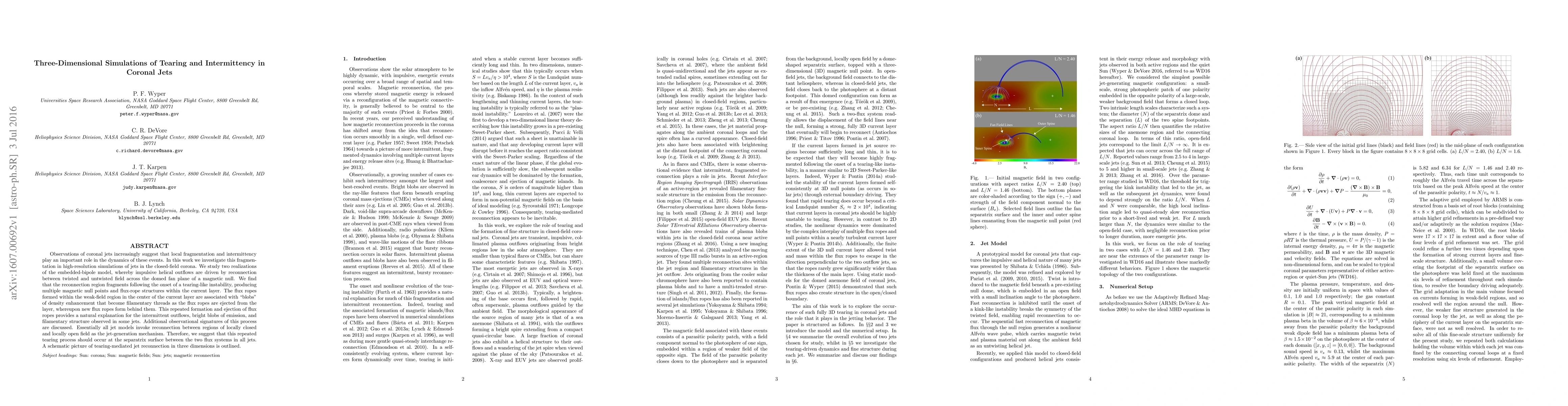 Observations of coronal jets increasingly suggest that local fragmentation and intermittency play an important role in the dynamics of these events. In this work we investigate this fragmentation in high-resolution simulations of jets in the closed-field corona. We study two realizations of the embedded-bipole model, whereby impulsive helical outflows are driven by reconnection between twisted and untwisted field across the domed fan plane of a magnetic null. We find that the reconnection region fragments following the onset of a tearing-like instability, producing multiple magnetic null points and flux-rope structures within the current layer. The flux ropes formed within the weak-field region in the center of the current layer are associated with "blobs" of density enhancement that become filamentary threads as the flux ropes are ejected from the layer, whereupon new flux ropes form behind them. This repeated formation and ejection of flux ropes provides a natural explanation for the intermittent outflows, bright blobs of emission, and filamentary structure observed in some jets. Additional observational signatures of this process are discussed. Essentially all jet models invoke reconnection between regions of locally closed and locally open field as the jet-generation mechanism. Therefore, we suggest that this repeated tearing process should occur at the separatrix surface between the two flux systems in all jets. A schematic picture of tearing-mediated jet reconnection in three dimensions is outlined.