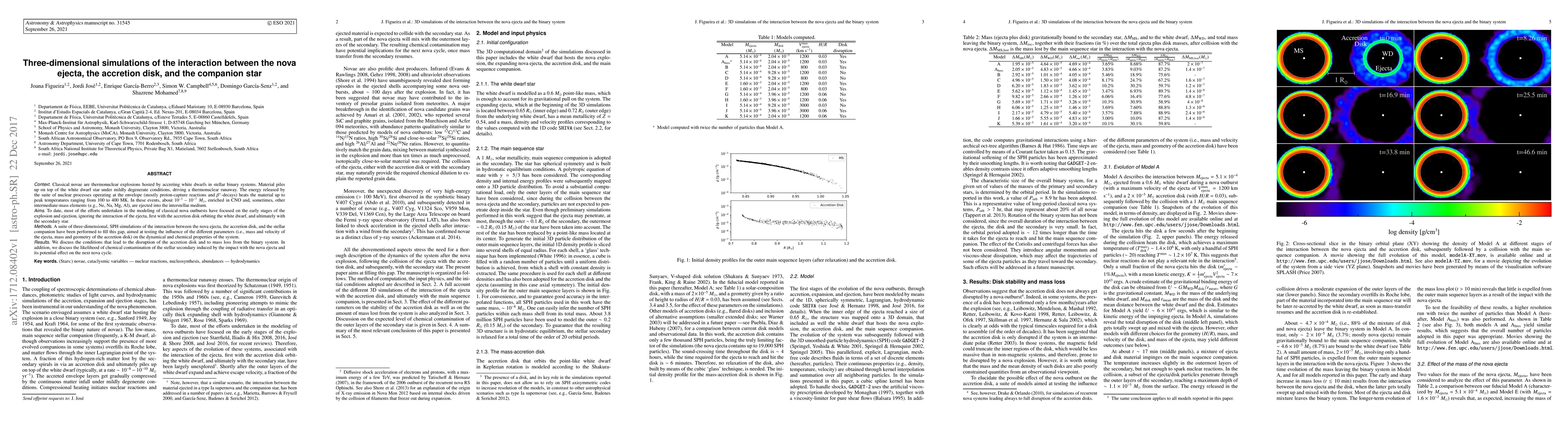 This paper presents three-dimensional simulations to model the interaction between nova ejecta, the accretion disk, and the companion star in classical novae. The study aims to understand the disruption of the accretion disk and the chemical contamination of the secondary star, providing insights into the dynamical and chemical evolution of the system.