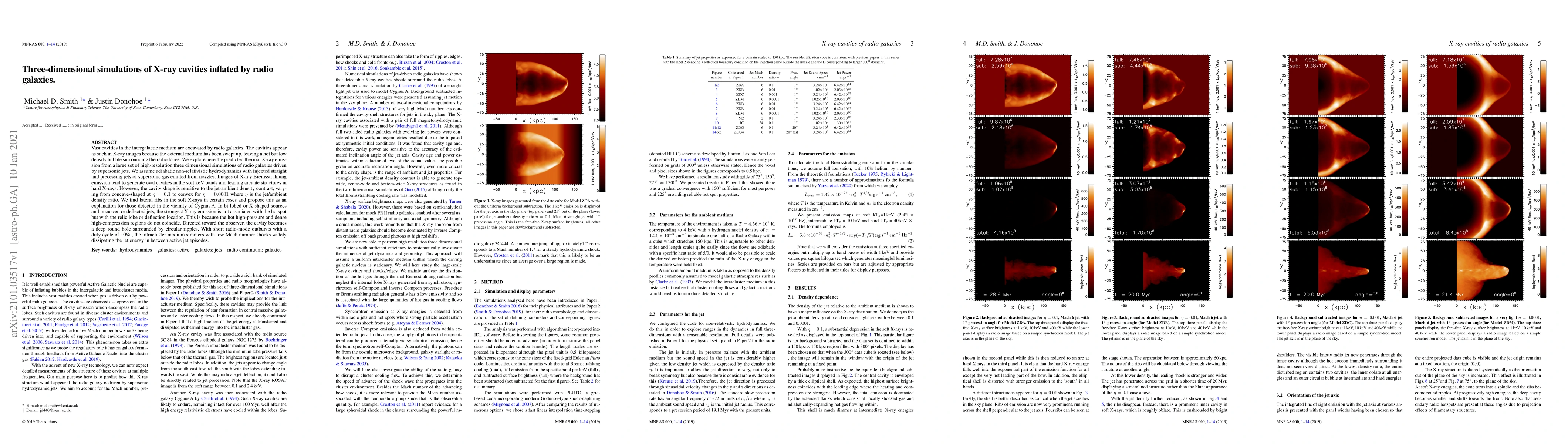 Vast cavities in the intergalactic medium are excavated by radio galaxies. The cavities appear as such in X-ray images because the external medium has been swept up, leaving a hot but low density bubble surrounding the radio lobes. We explore here the predicted thermal X-ray emission from a large set of high-resolution three dimensional simulations of radio galaxies driven by supersonic jets. We assume adiabatic non-relativistic hydrodynamics with injected straight and precessing jets of supersonic gas emitted from nozzles. Images of X-ray Bremsstrahlung emission tend to generate oval cavities in the soft keV bands and leading arcuate structures in hard X-rays. However, the cavity shape is sensitive to the jet-ambient density contrast, varying from concave-shaped at $\eta = 0.1$ to convex for $\eta = 0.0001$ where $\eta$ is the jet/ambient density ratio. We find lateral ribs in the soft X-rays in certain cases and propose this as an explanation for those detected in the vicinity of Cygnus\,A. In bi-lobed or X-shaped sources and in curved or deflected jets, the strongest X-ray emission is not associated with the hotspot but with the relic lobe or deflection location. This is because the hot high-pressure and dense high-compression regions do not coincide. Directed toward the observer, the cavity becomes a deep round hole surrounded by circular ripples. With short radio-mode outbursts with a duty cycle of 10\% , the intracluster medium simmers with low Mach number shocks widely dissipating the jet energy in between active jet episodes.