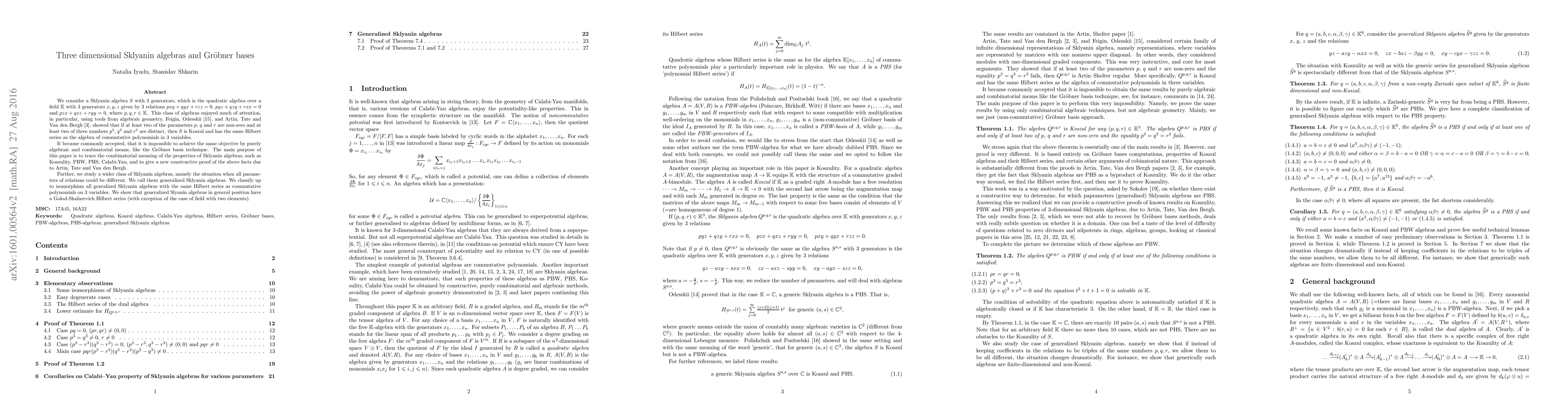 This paper investigates 3-dimensional Sklyanin algebras with three generators and relations among them, aiming to trace combinatorial properties such as Koszulity and Calabi-Yau features using Groebner bases. The authors provide a new algebraic proof of the Koszul property for these algebras and classify generalized Sklyanin algebras with polynomial Hilbert series, showing they often have the Golod-Shafarevich series.