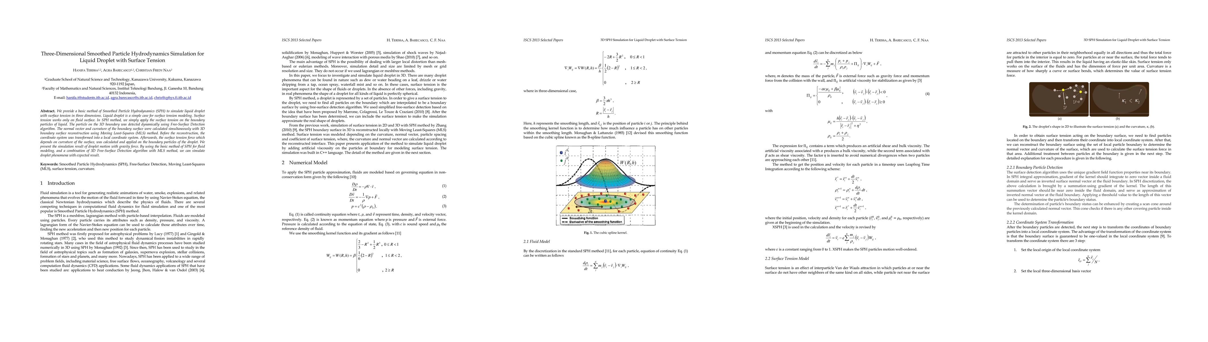 This paper presents a basic Smoothed Particle Hydrodynamics (SPH) method to simulate liquid droplets with surface tension in three dimensions, applying surface tension forces on boundary particles detected dynamically. The method uses a combination of Free-Surface Detection and Moving Least-Squares for boundary reconstruction and surface tension force calculation, yielding accurate droplet motion simulations under gravity.
