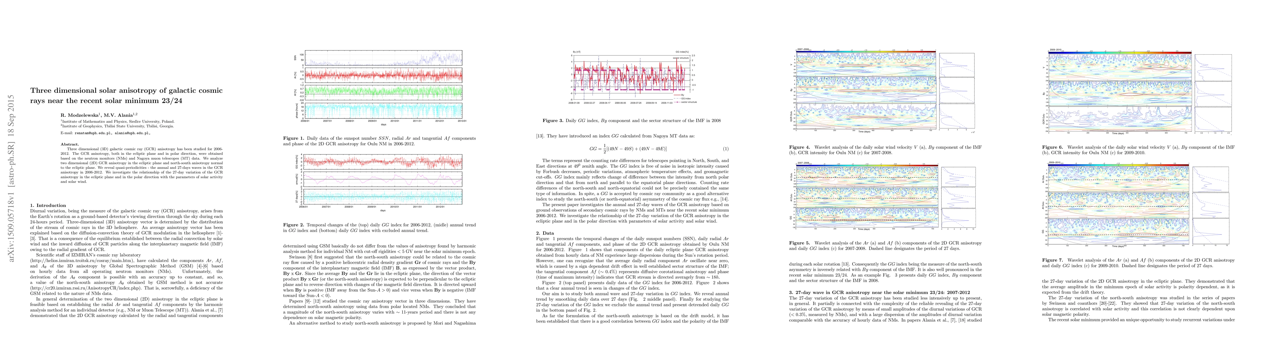 Researchers analyzed galactic cosmic ray (GCR) anisotropy near a recent solar minimum, revealing quasi-periodicities in annual and 27-day waves, which were linked to solar activity and wind parameters.