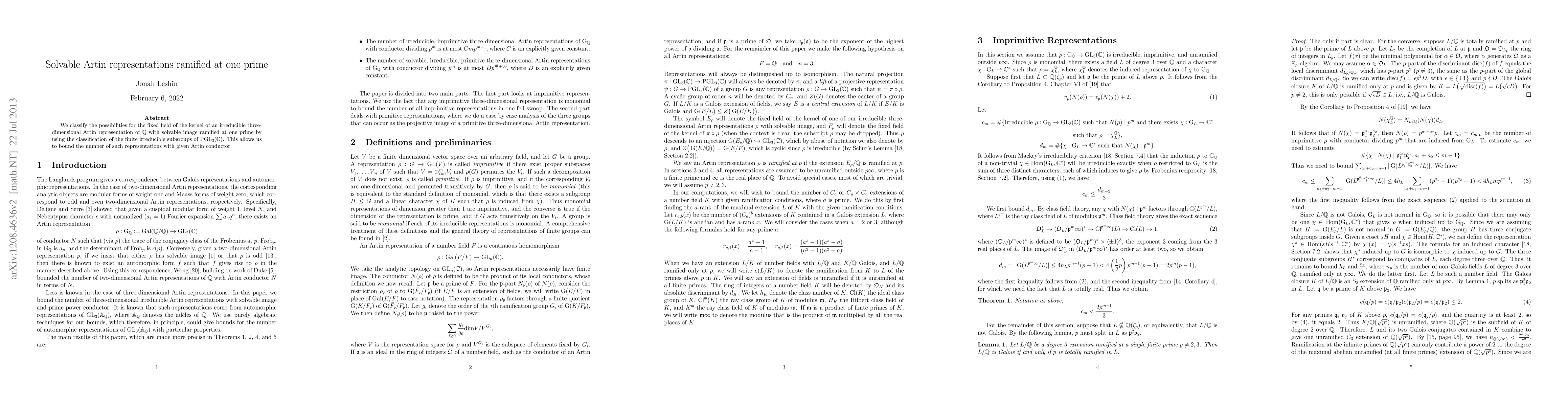 This paper classifies three-dimensional Artin representations of $\Q$ with solvable image that are ramified at a single prime, using the finite irreducible subgroups of $\PGL_3(\C)$ to determine the fixed fields of their kernels. It also provides bounds on the number of such representations with specified Artin conductors.