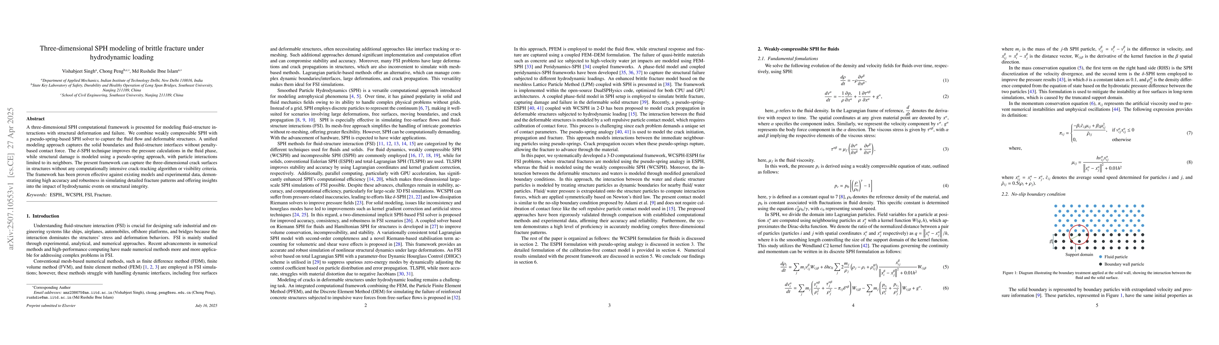A three-dimensional SPH computational framework is presented for modeling fluid-structure interactions with structural deformation and failure. We combine weakly compressible SPH with a pseudo-spring-based SPH solver to capture the fluid flow and deformable structures. A unified modeling approach captures the solid boundaries and fluid-structure interfaces without penalty-based contact force. The $\delta$-SPH technique improves the pressure calculations in the fluid phase, while structural damage is modeled using a pseudo-spring approach, with particle interactions limited to its neighbors. The present framework can capture the three-dimensional crack surfaces in structures without any computationally intensive crack-tracking algorithm or visibility criteria. The framework has been proven effective against existing models and experimental data, demonstrating high accuracy and robustness in simulating detailed fracture patterns and offering insights into the impact of hydrodynamic events on structural integrity.