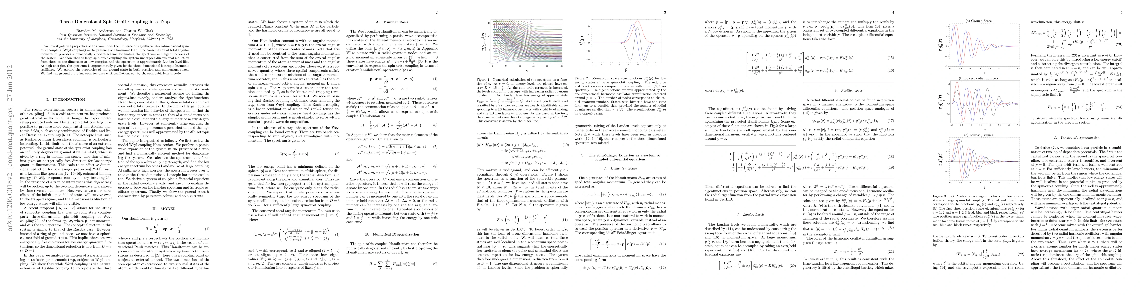 Researchers investigate how a synthetic spin-orbit coupling affects an atom's behavior in a three-dimensional trap, revealing a transition to one-dimensional behavior at low energies and a spectrum akin to the three-dimensional harmonic oscillator at high energies.