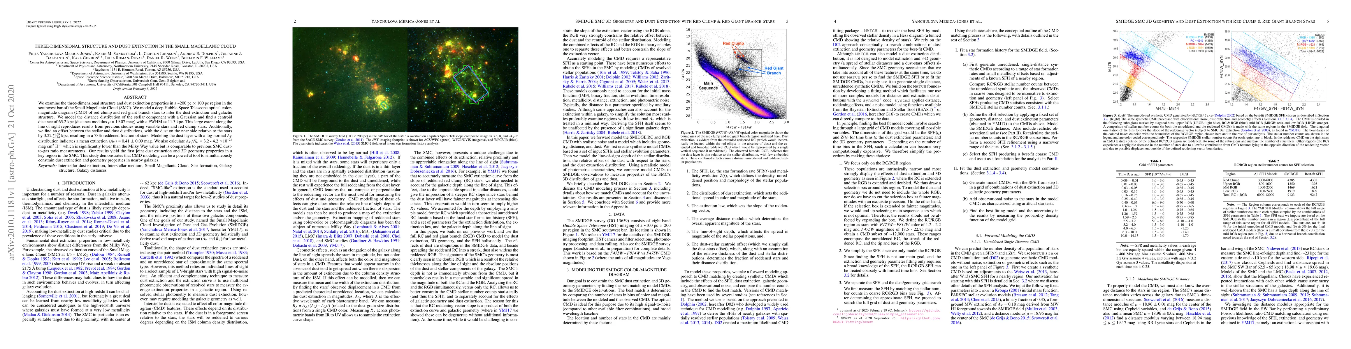 We examine the three-dimensional structure and dust extinction properties in a ~ 200 pc $\times$ 100 pc region in the southwest bar of the Small Magellanic Cloud (SMC). We model a deep Hubble Space Telescope optical color-magnitude diagram (CMD) of red clump and red giant branch stars to infer the dust extinction and galactic structure. We model the distance distribution of the stellar component with a Gaussian and find a centroid distance of 65.2 kpc (distance modulus $\mu$ = 19.07 mag) with a FWHM $\approx$ 11.3 kpc. This large extent along the line of sight reproduces results from previous studies using variable stars and red clump stars. Additionally, we find an offset between the stellar and dust distributions, with the dust on the near side relative to the stars by 3.22 $^{+1.69}_{-1.44}$ kpc, resulting in a 73% reddened fraction of stars. Modeling the dust layer with a log-normal $A_V$ distribution indicates a mean extinction $\langle A_V \rangle$ = 0.41 $\pm$ 0.09 mag. We also calculate $A_V/N_H$ = 3.2 - 4.2 $\times10^{-23}$ mag cm$^2$ H$^{-1}$ which is significantly lower than the Milky Way value but is comparable to previous SMC dust-to-gas ratio measurements. Our results yield the first joint dust extinction and 3D geometry properties in a key region in the SMC. This study demonstrates that CMD modeling can be a powerful tool to simultaneously constrain dust extinction and geometry properties in nearby galaxies.