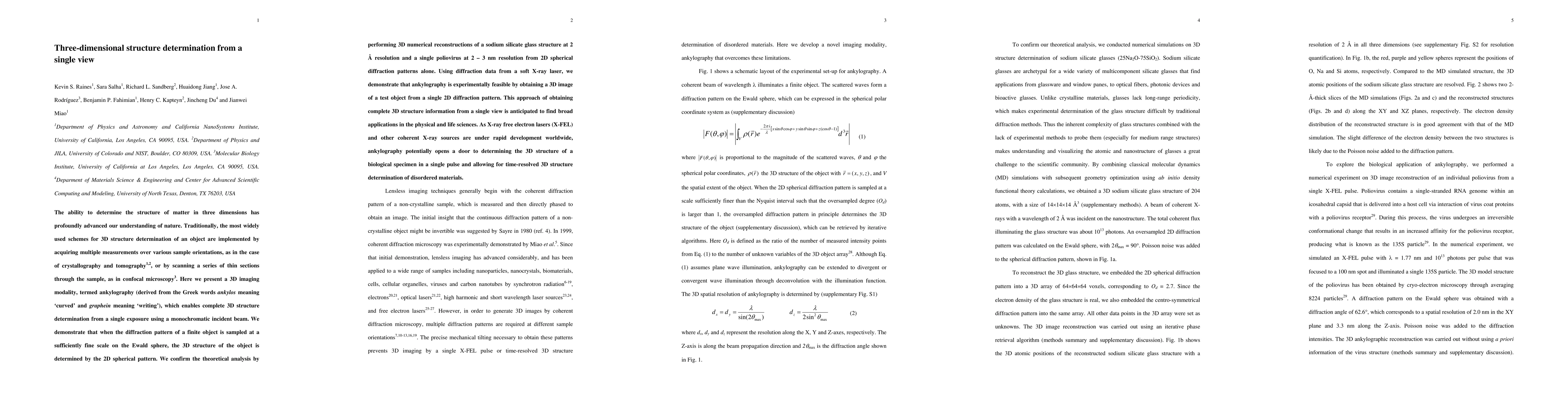 Researchers developed a method called ankylography that can determine the 3D structure of objects from a single view using X-ray diffraction, opening up new possibilities for studying biological specimens and disordered materials.
