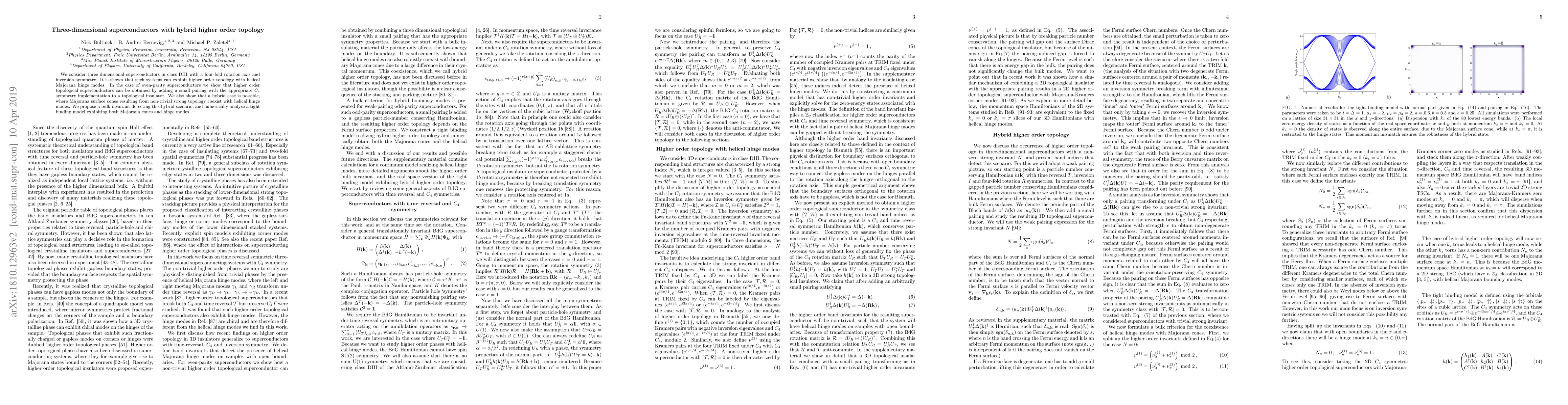 This paper investigates three-dimensional superconductors in class DIII, demonstrating that they can exhibit higher order topological phases with helical Majorana hinge modes. It also shows how hybrid scenarios with coexisting Majorana surface cones and hinge modes can be realized, proposing a bulk invariant to detect this hybrid topology and analyzing a tight-binding model to numerically confirm these phenomena.