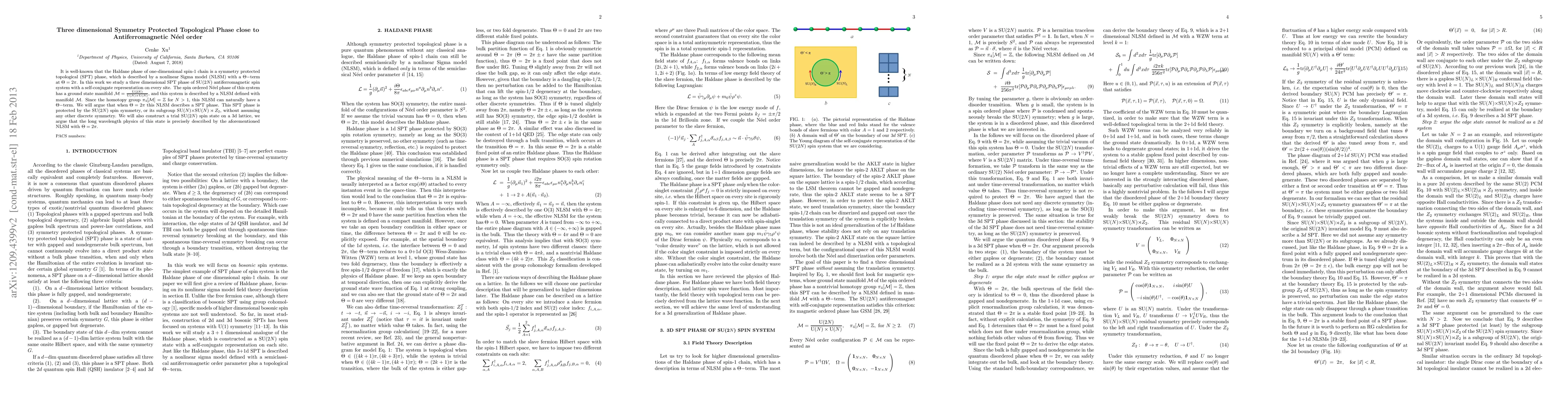 It is well-known that the Haldane phase of one-dimensional spin-1 chain is a symmetry protected topological (SPT) phase, which is described by a nonlinear Sigma model (NLSM) with a Theta-term at Theta = 2Pi. In this work we study a three dimensional SPT phase of SU(2N) antiferromagnetic spin system with a self-conjugate representation on every site. The spin ordered Neel phase of this system has a ground state manifold M = U(2N)/[U(N)xU(N)], and this system is described by a NLSM defined with manifold M. Since the homotopy group Pi4[M] = Z for N > 1, this NLSM can naturally have a Theta-term. We will argue that when Theta = 2Pi this NLSM describes a SPT phase. This SPT phase is protected by the SU(2N) spin symmetry, or its subgroup SU(N)xSU(N)xZ2, without assuming any other discrete symmetry. We will also construct a trial SU(2N) spin state on a 3d lattice, we argue that the long wavelength physics of this state is precisely described by the aforementioned NLSM with Theta = 2Pi.