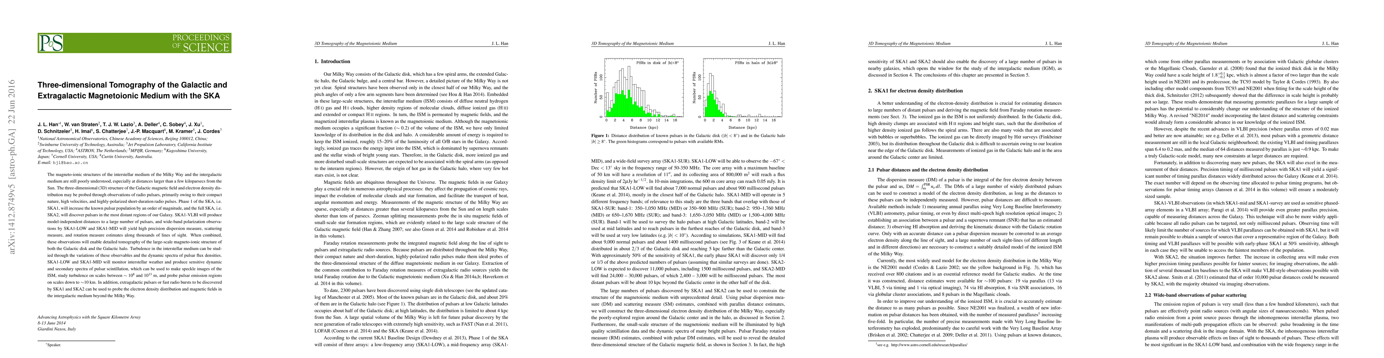 The magneto-ionic structures of the interstellar medium of the Milky Way and the intergalactic medium are still poorly understood, especially at distances larger than a few kiloparsecs from the Sun. The three-dimensional (3D) structure of the Galactic magnetic field and electron density distribution may be probed through observations of radio pulsars, primarily owing to their compact nature, high velocities, and highly-polarized short-duration radio pulses. Phase 1 of the SKA, i.e. SKA1, will increase the known pulsar population by an order of magnitude, and the full SKA, i.e. SKA2, will discover pulsars in the most distant regions of our Galaxy. SKA1-VLBI will produce model-independent distances to a large number of pulsars, and wide-band polarization observations by SKA1-LOW and SKA1-MID will yield high precision dispersion measure, scattering measure, and rotation measure estimates along thousands of lines of sight. When combined, these observations will enable detailed tomography of the large-scale magneto-ionic structure of both the Galactic disk and the Galactic halo. Turbulence in the interstellar medium can be studied through the variations of these observables and the dynamic spectra of pulsar flux densities. SKA1-LOW and SKA1-MID will monitor interstellar weather and produce sensitive dynamic and secondary spectra of pulsar scintillation, which can be used to make speckle images of the ISM, study turbulence on scales between ~10^8 and ~10^13 m, and probe pulsar emission regions on scales down to $\sim$10 km. In addition, extragalactic pulsars or fast radio bursts to be discovered by SKA1 and SKA2 can be used to probe the electron density distribution and magnetic fields in the intergalactic medium beyond the Milky Way.