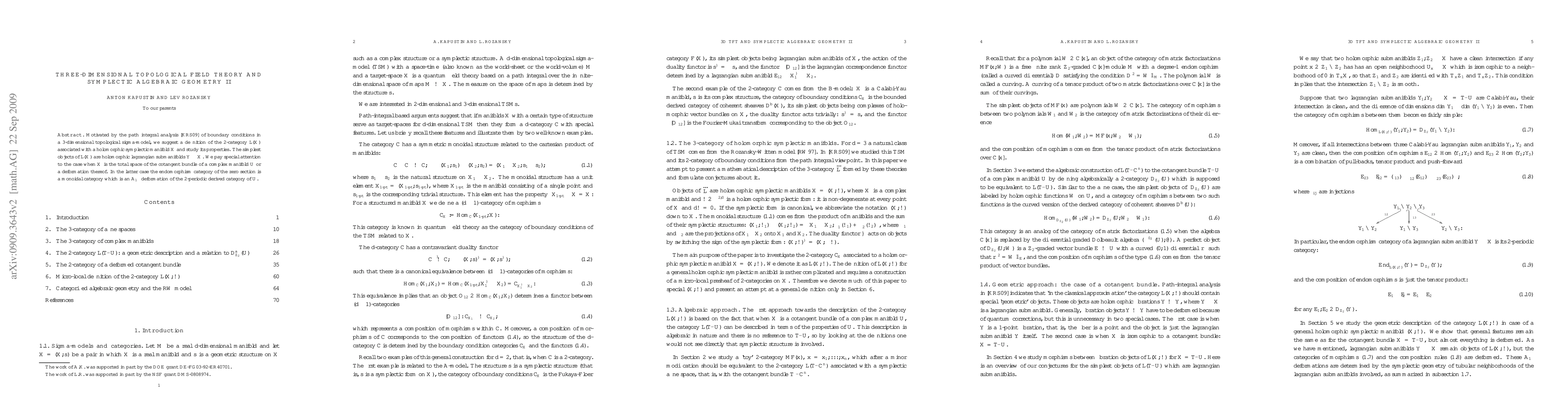 Motivated by the path integral analysis of boundary conditions in a 3-dimensional topological sigma-model, we suggest a definition of the 2-category associated with a holomorphic symplectic manifold X and study its properties. The simplest objects of this 2-category are holomorphic lagrangian submanifolds of X. We pay special attention to the case when X is the total space of the cotangent bundle of a complex manifold U or a deformation thereof. In the latter case the endomorphism category of the zero section is a monoidal category which is an A-infinity deformation of the 2-periodic derived category of U.
