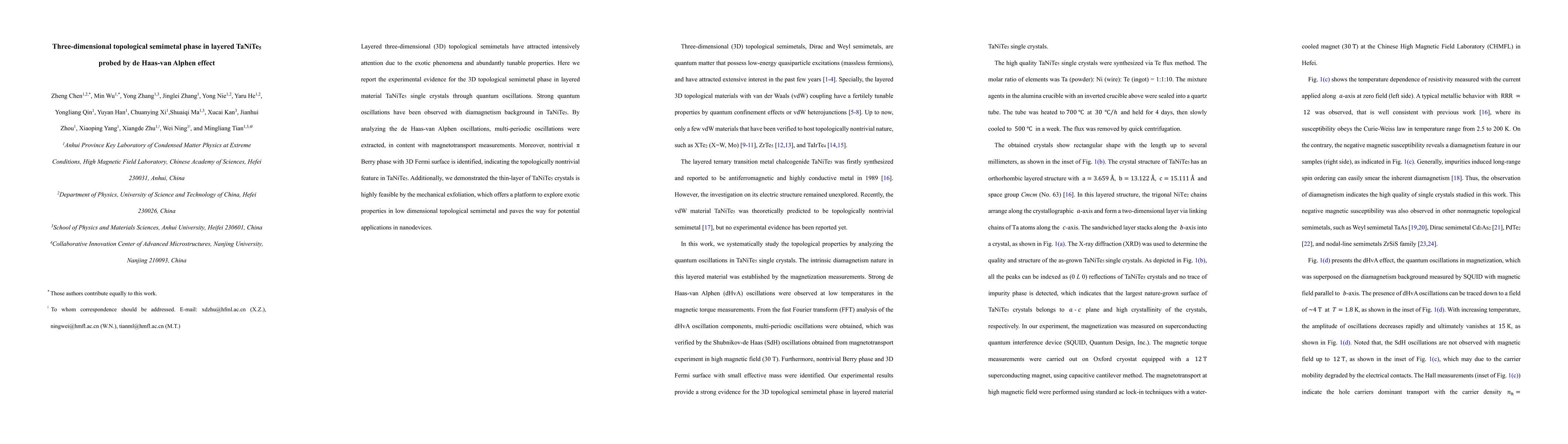 This paper reports experimental evidence for the three-dimensional topological semimetal phase in TaNiTe5 through de Haas-van Alphen effect analysis, revealing multi-periodic quantum oscillations and a nontrivial "π" Berry phase. The study also demonstrates the feasibility of thin-layer mechanical exfoliation, opening pathways for exploring exotic properties and potential nanodevice applications.