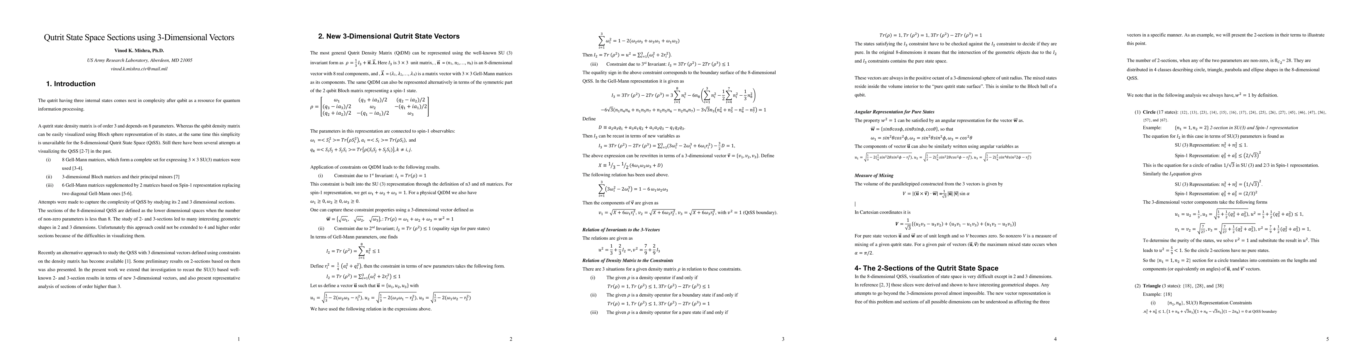This paper introduces a novel method for visualizing the 8-dimensional state space of qutrits in a 3-dimensional Cartesian space, contrasting with the simpler Bloch sphere representation for qubits, and compares it to previous visualization techniques.
