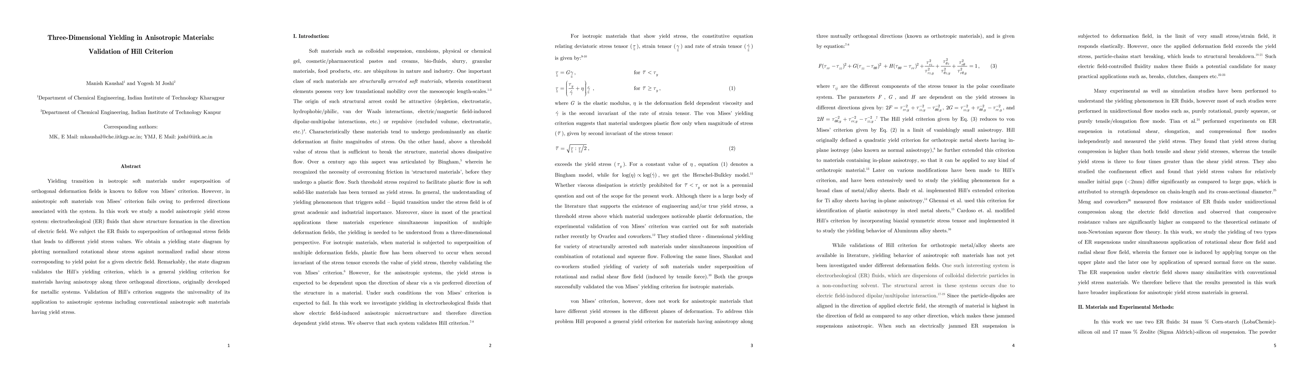 This paper investigates yielding behavior in anisotropic electrorheological fluids under orthogonal stress fields, finding that the Hill criterion effectively predicts their yielding compared to the von Mises criterion, indicating the criterion's applicability to anisotropic materials beyond metallic systems.