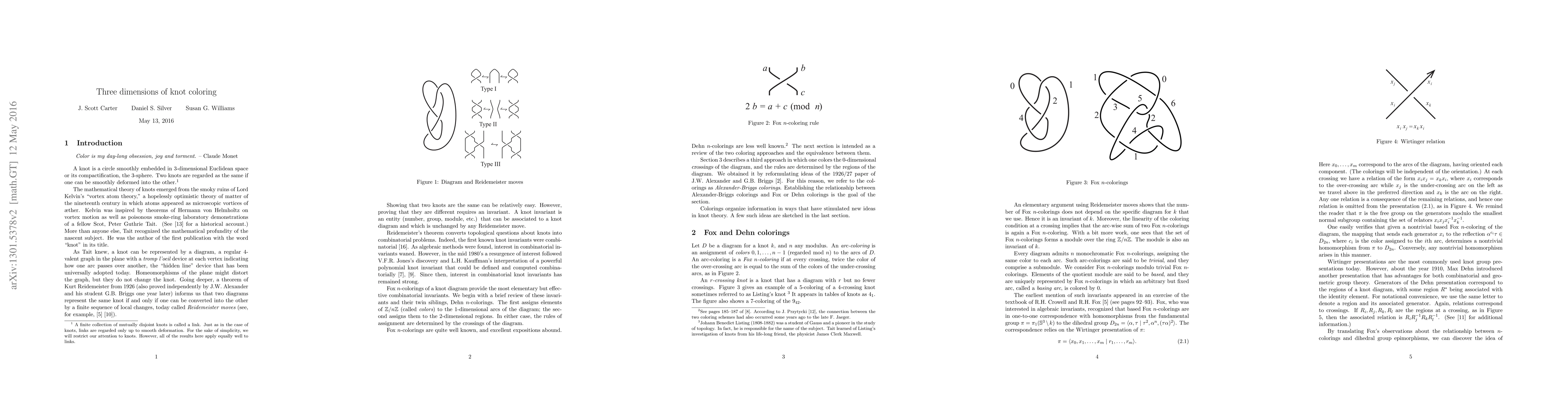 This survey article discusses three aspects of knot colorings. Fox colorings are assignments of labels to arcs, Dehn colorings are assignments of labels to regions, and Alexander-Briggs colorings assign labels to vertices. The labels are found among the integers modulo n. The choice of n depends upon the knot. Each type of coloring rules has an associated rule that must hold at each crossing. For the Alexander Briggs colorings, the rules hold around regions. The relationships among the colorings is explained.