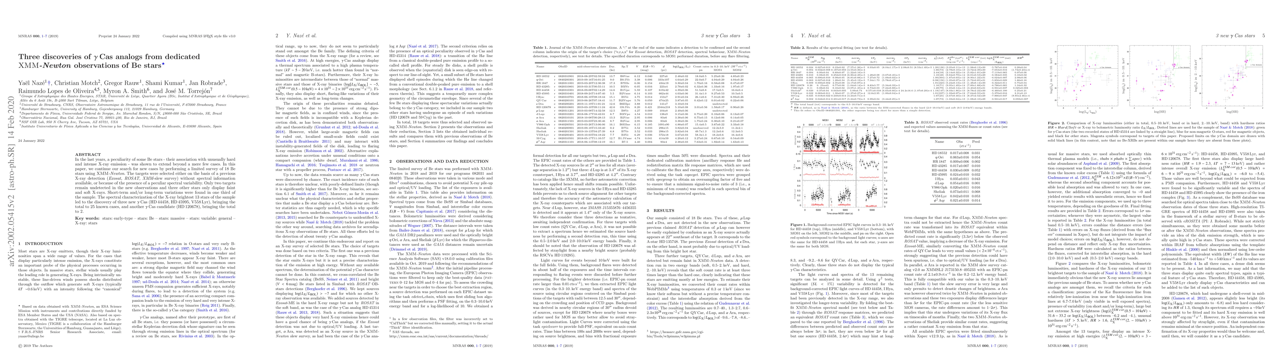 In the last years, a peculiarity of some Be stars - their association with unusually hard and intense X-ray emission - was shown to extend beyond a mere few cases. In this paper, we continue our search for new cases by performing a limited survey of 18 Be stars using XMM-Newton. The targets were selected either on the basis of a previous X-ray detection (Exosat, ROSAT, XMM-slew survey) without spectral information available, or because of the presence of a peculiar spectral variability. Only two targets remain undetected in the new observations and three other stars only display faint and soft X-rays. Short-term and/or long-term variations were found in one third of the sample. The spectral characterization of the X-ray brightest 13 stars of the sample led to the discovery of three new gamma Cas (HD44458, HD45995, V558Lyr), bringing the total to 25 known cases, and another gamma Cas candidate (HD120678), bringing the total to 2.