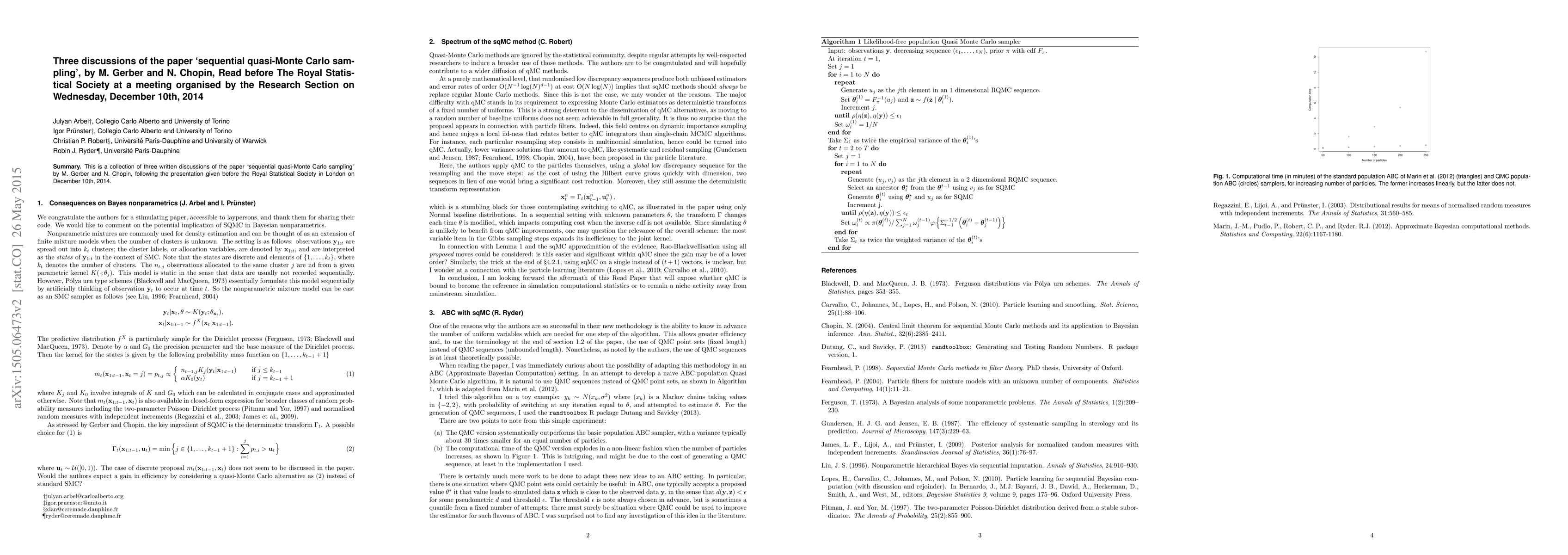 This paper compiles three discussions on "sequential quasi-Monte Carlo sampling" by M. Gerber and N. Chopin, presented at the Royal Statistical Society in London on December 10, 2014, offering insights and critiques from various experts.