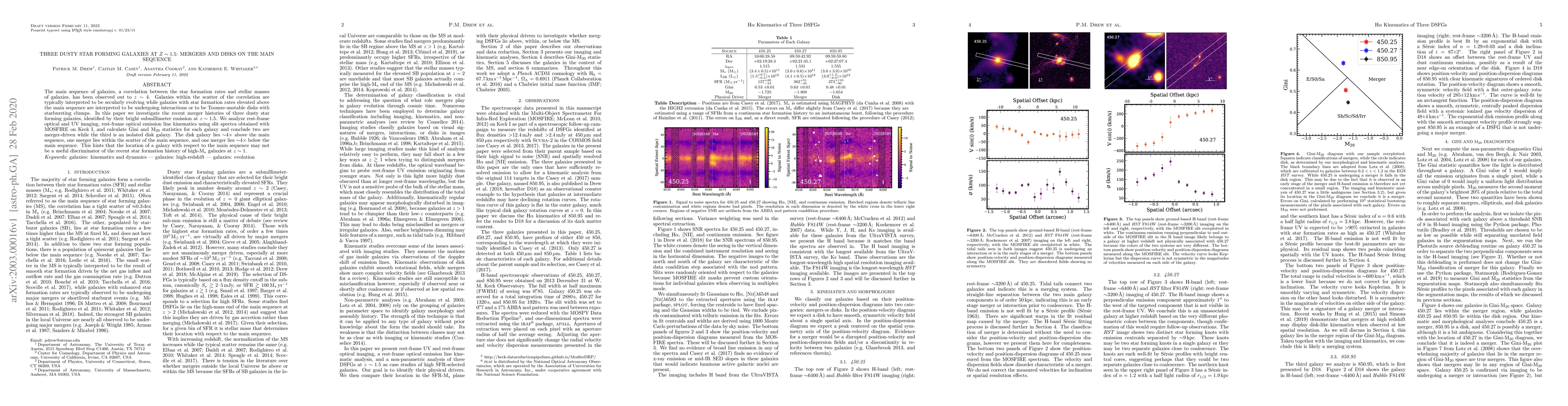 The main sequence of galaxies, a correlation between the star formation rates and stellar masses of galaxies, has been observed out to $z\sim4$. Galaxies within the scatter of the correlation are typically interpreted to be secularly evolving while galaxies with star formation rates elevated above the main sequence are interpreted to be undergoing interactions or to be Toomre-unstable disks with starbursting clumps. In this paper we investigate the recent merger histories of three dusty star forming galaxies, identified by their bright submillimeter emission at $z\sim1.5$. We analyze rest-frame optical and UV imaging, rest-frame optical emission line kinematics using slit spectra obtained with MOSFIRE on Keck I, and calculate Gini and M$_{20}$ statistics for each galaxy and conclude two are merger-driven while the third is an isolated disk galaxy. The disk galaxy lies $\sim$4$\times$ above the main sequence, one merger lies within the scatter of the main sequence, and one merger lies $\sim$4$\times$ below the main sequence. This hints that the location of a galaxy with respect to the main sequence may not be a useful discriminator of the recent star formation history of high-M$_{\star}$ galaxies at $z\sim1$.