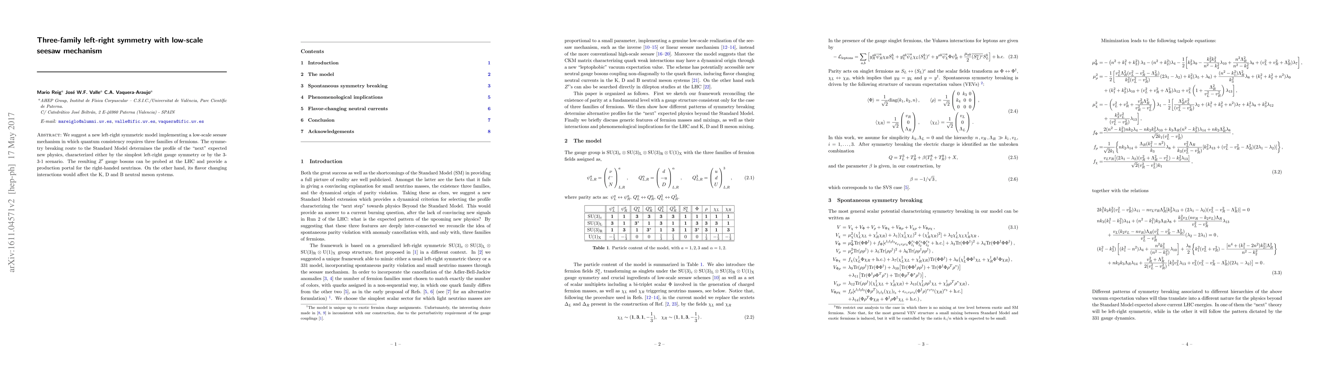 We suggest a new left-right symmetric model implementing a low-scale seesaw mechanism in which quantum consistency requires three families of fermions. The symmetry breaking route to the Standard Model determines the profile of the "next" expected new physics, characterized either by the simplest left-right gauge symmetry or by the 3-3-1 scenario. The resulting $Z^\prime$ gauge bosons can be probed at the LHC and provide a production portal for the right-handed neutrinos. On the other hand, its flavor changing interactions would affect the K, D and B neutral meson systems.