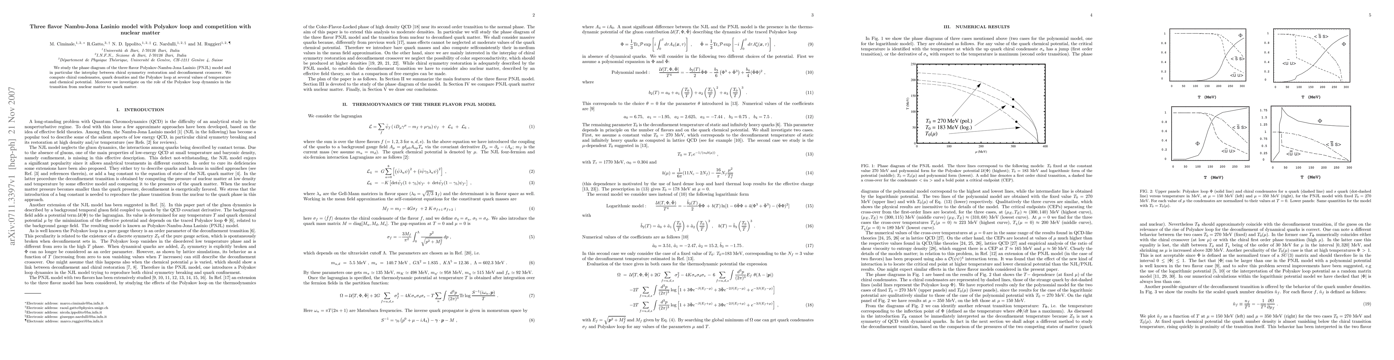 This paper explores the phase diagram of the three-flavor Polyakov-Nambu-Jona Lasinio (PNJL) model, focusing on the interplay between chiral symmetry restoration and deconfinement crossover, and investigates the dynamics of the Polyakov loop in the transition from nuclear to quark matter.