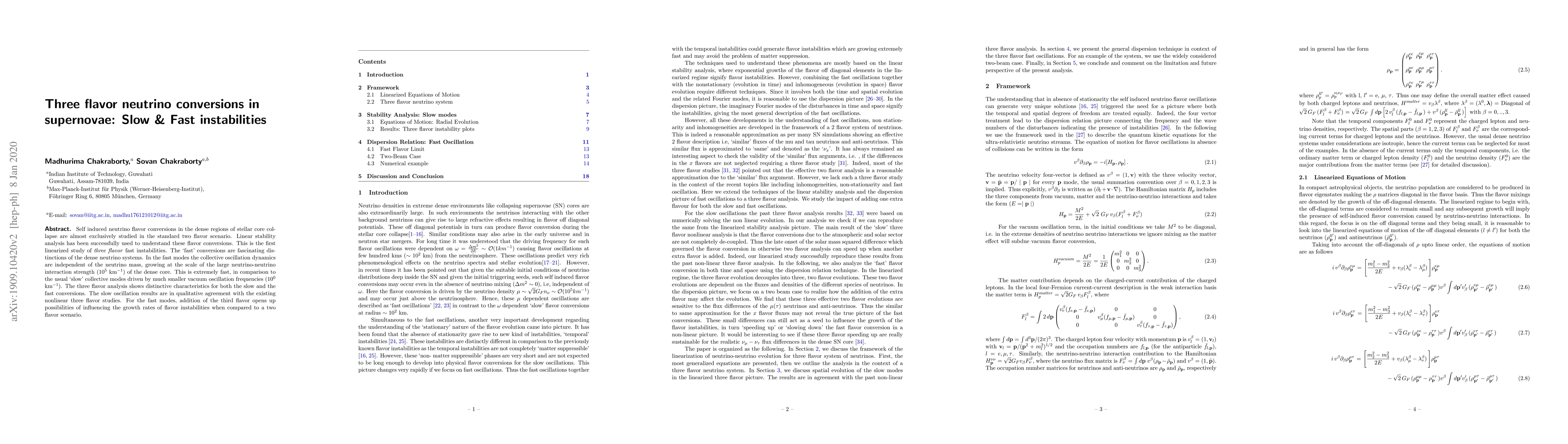 This paper investigates self-induced neutrino flavor conversions in supernovae, focusing on both slow and fast instabilities within a three-flavor framework. It reveals that fast conversions, driven by strong neutrino-neutrino interactions, occur much more rapidly than slow modes, and the inclusion of a third flavor can significantly alter the growth rates of flavor instabilities compared to a two-flavor scenario.