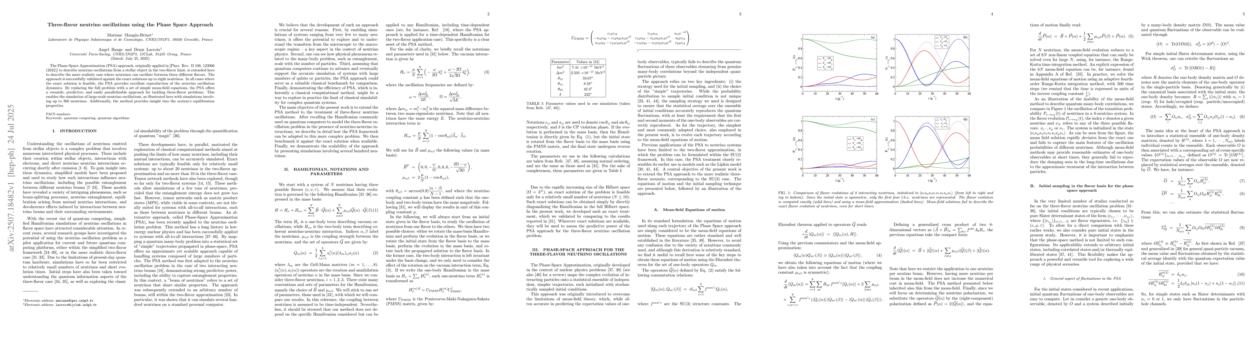 The research extends the Phase-Space Approximation (PSA) to describe three-flavor neutrino oscillations, validating it against exact solutions for up to eight neutrinos. The PSA simplifies the problem into a set of mean-field equations, enabling simulations of large-scale neutrino oscillations.