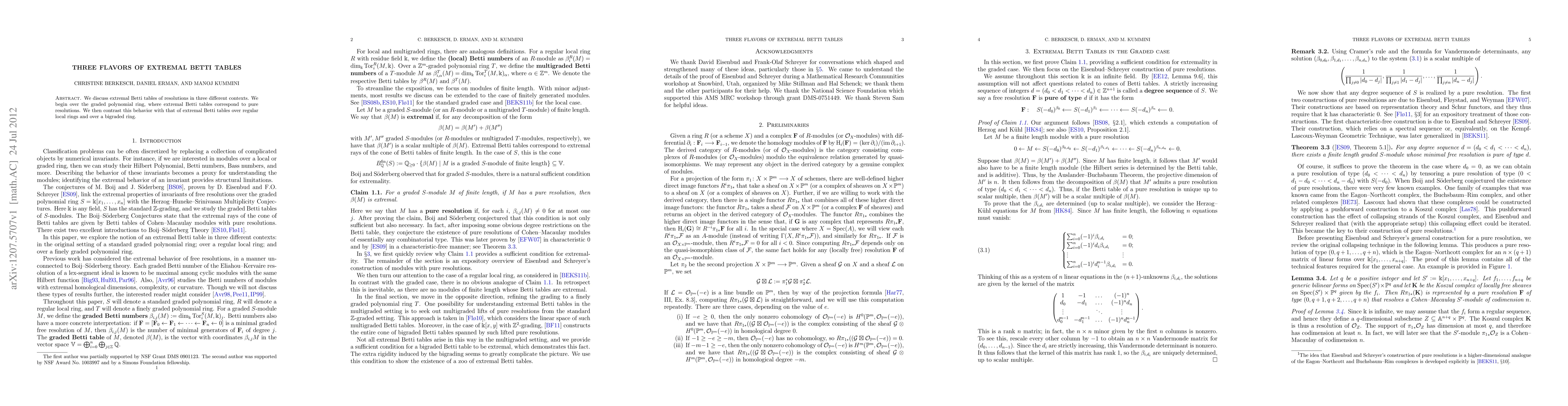Summary: This paper explores extremal Betti tables in three distinct settings: over a graded polynomial ring, regular local rings, and a bigraded ring, highlighting differences in pure resolutions and contrasting behaviors in each context.