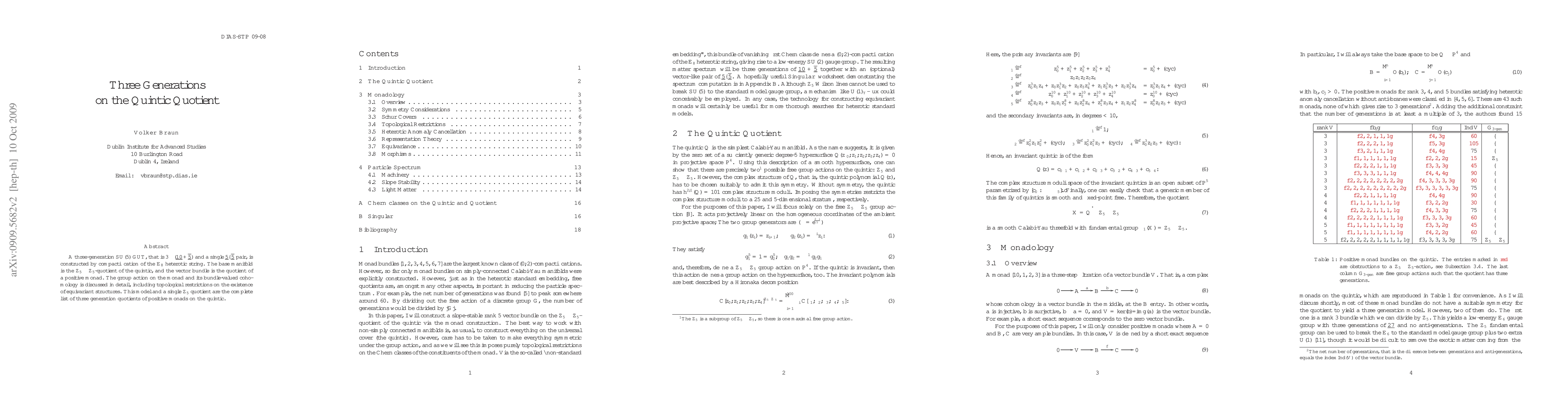 The research constructs a three-generation SU(5) GUT by compactifying the E_8 heterotic string on a Z_5 x Z_5 quotient of the quintic, using a positive monad vector bundle with detailed discussion on the group action and topological restrictions.