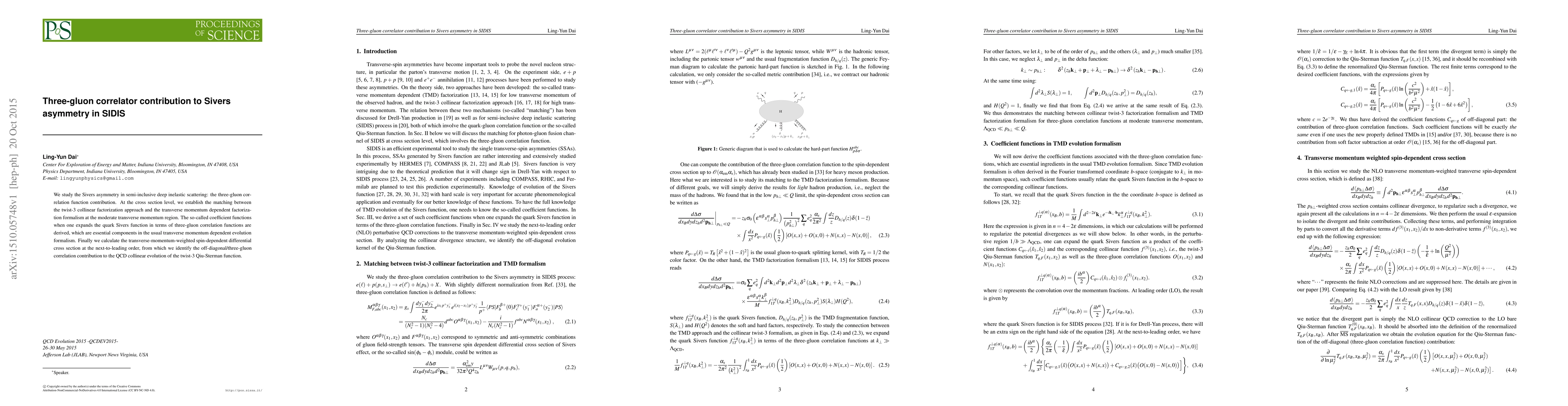 This paper investigates the Sivers asymmetry in semi-inclusive deep inelastic scattering, focusing on the contribution from three-gluon correlator functions. It establishes a connection between twist-3 collinear factorization and transverse momentum dependent factorization, deriving coefficient functions essential for the evolution of the quark Sivers function, and calculates the next-to-leading order differential cross section to identify the three-gluon correlation contribution to the twist-3 Qiu-Sterman function.