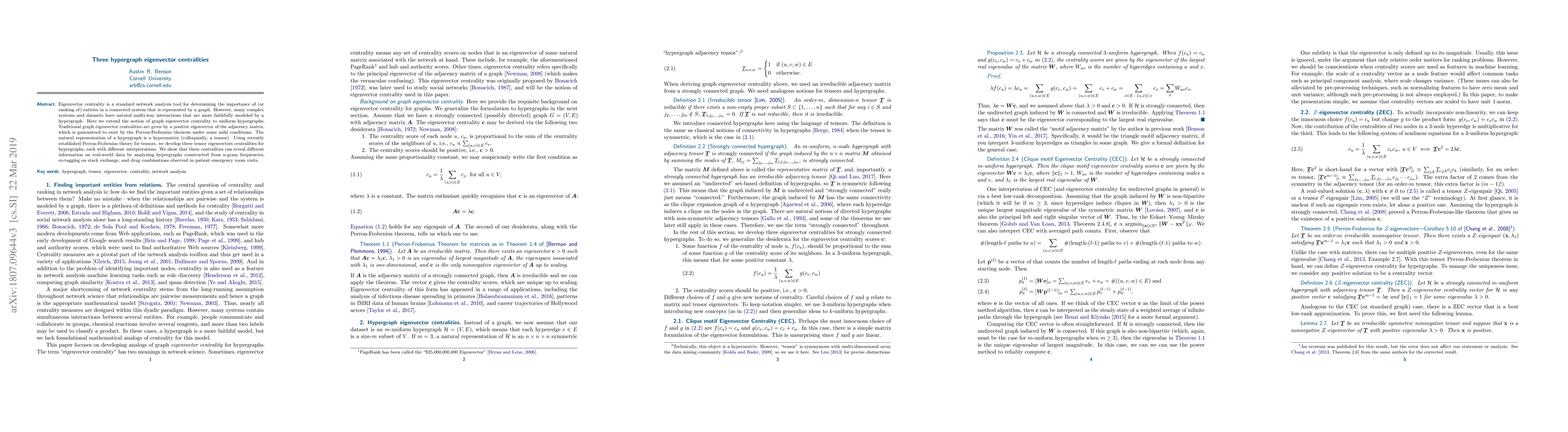 Researchers extended graph eigenvector centrality to hypergraphs, developing three new tensor eigenvector centralities that reveal different information on real-world data, including n-gram frequencies, co-tagging on Stack Exchange, and drug combinations observed in patient emergency room visits.