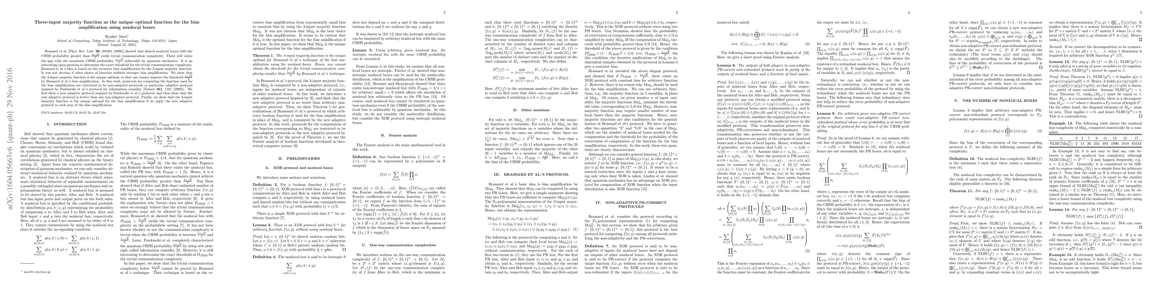 Brassard et al. [Phys. Rev. Lett. 96, 250401 (2006)] showed that shared nonlocal boxes with the CHSH probability greater than $\frac{3+\sqrt{6}}6$ yields trivial communication complexity. There still exists the gap with the maximum CHSH probability $\frac{2+\sqrt{2}}4$ achievable by quantum mechanics. It is an interesting open question to determine the exact threshold for the trivial communication complexity. Brassard et al.'s idea is based on the recursive bias amplification by the 3-input majority function. It was not obvious if other choice of function exhibits stronger bias amplification. We show that the 3-input majority function is the unique optimal, so that one cannot improve the threshold $\frac{3+\sqrt{6}}6$ by Brassard et al.'s bias amplification. In this work, protocols for computing the function used for the bias amplification are restricted to be non-adaptive protocols or particular adaptive protocol inspired by Paw{\l}owski et al.'s protocol for information causality [Nature 461, 1101 (2009)]. We first show a new adaptive protocol inspired by Paw{\l}owski et al.'s protocol, and then show that the new adaptive protocol is better than any non-adaptive protocol. Finally, we show that the 3-input majority function is the unique optimal for the bias amplification if we apply the new adaptive protocol to each step of the bias amplification.